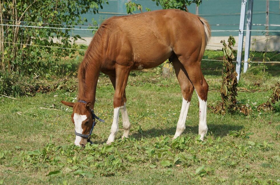Bardzo dobrze wychowany, podwójnie zarejestrowany roczniak Quarter Horse/Paint Horse - Lokalizacja: 89129 AM Little Bit Of All - ten piękny, podwójnie zarejestrowany roczniak, urodzony 18.02.2024 r., zachwyca nie tylko prawidłową budową, wspaniałym kasztanowym umaszczeniem i super rodowodem, ale przede wszystkim swoim wyjątkowym charakterem. Loki to prawdziwa przytulanka. Bardzo zorientowany na ludzi, super dobrze wychowany, fajny i otwarty. Już teraz uwielbia jeździć w terenie jako koń wierzchowy i nie boi się przyczep. Loki dorasta w stadzie koni w tym samym wieku w otwartej stajni i został zaszczepiony i odrobaczony zgodnie ze swoim wiekiem. Jest 7-panelowy n/n przez rodziców. Ojcem Lokiego jest młody ogier AM Hot Chester, syn Only Krysun od córki Potential Investment. AM Hot Chester to doskonały ruchowiec z już udanym potomstwem: Zwycięzca Pokazu Źrebiąt, Czempion Europy i Niemiec w Halterze i wiele innych. . Matka roczniaka pochodzi od Third Hot Step/Coat N Tails. Loki kwalifikuje się do udziału w PHCG Futurity.