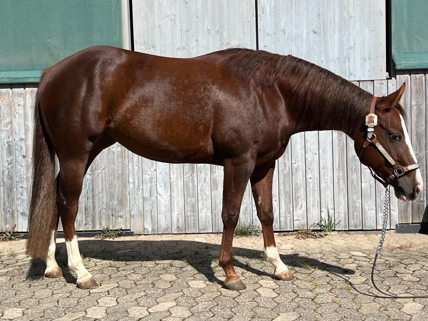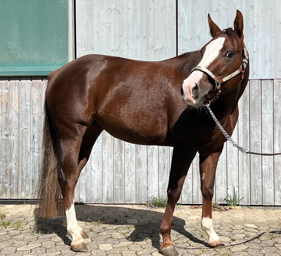 Bardzo fajna i utalentowana klacz rasy Paint Horse - Bardzo inteligentna i piękna klacz Paint Horse na sprzedaż w ręce opiekuna. Gucci urodziła się w 2020 roku i obecnie mierzy 142 cm wzrostu. Chociaż nie jest najwyższa, jej silna i zwarta budowa dobrze obejmuje również wyższych jeźdźców. Bardzo fajna i nieustraszona, z dużym talentem, a także bardzo chętna do nauki. Klacz jest przyzwyczajona do przebywania w otwartej stajni, a także w boksie z padokiem. Jest całkowicie nieskomplikowana w kontaktach z innymi końmi. Gucci nigdy nie chorowała i była regularnie badana przez weterynarza i dentystę. 5-panelowa n/n. Jest dobrze wyszkolona w trzech podstawowych chodach i wykazuje początki elementów reiningu. Obecnie jest przygotowywana do testów młodych koni EWU. Wykazuje ogromny talent do reiningu i jazdy ranczerskiej. Bez strachu jeździ samodzielnie i w grupie. Gucci ma dobry rodowód reiningowy i wszechstronny. Jej ojcem jest z powodzeniem pokazywana Smokin Mifillena (Lte.: 31000 $), jej matką jest Really Rugged Kid i ma już kilka dobrych potomków. Każdy, kto szuka świetnego, niezbyt dużego młodego konia, powinien przyjrzeć się Gucci. Można również dokupić dopasowane siodło westernowe. Na sprzedaż prywatnie. Lokalizacja: 56244 Niedersayn