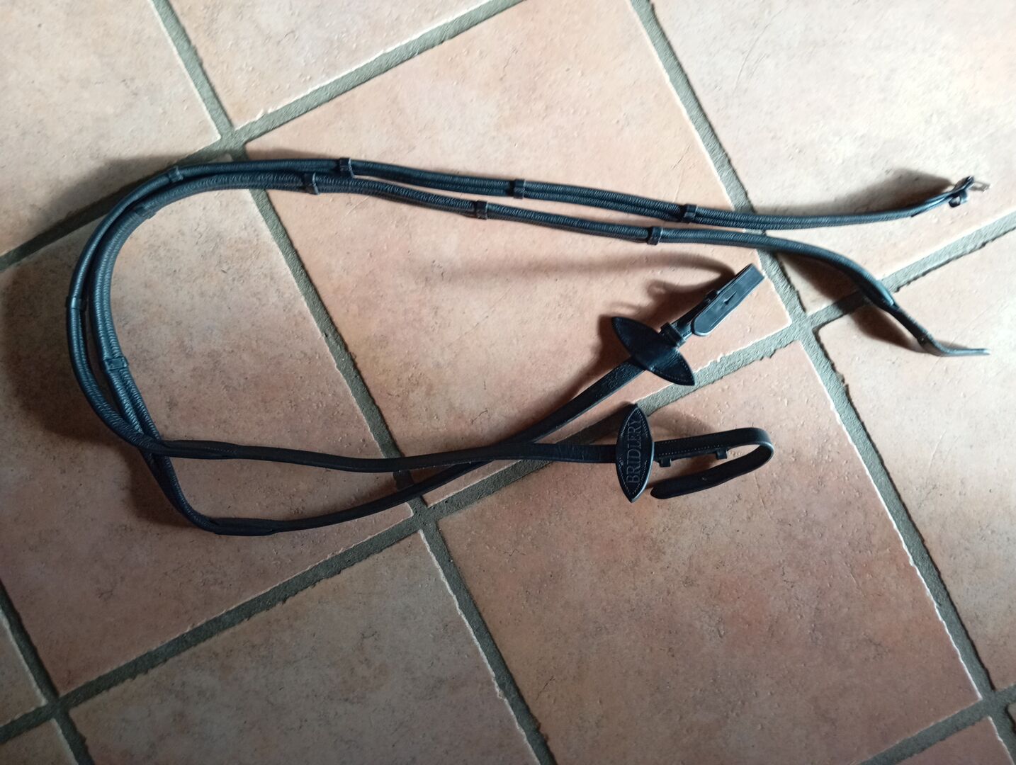 Bardzo miękkie lejce do uzdy - Wodze do uzdy ultra miękkie, 140 cm. Kolor: czarny Jak nowe Wysokiej jakości wodze z garbowanej roślinnie skóry. Miękka wyściółka nie tylko zapewnia przyjemne uczucie w dłoniach, ale także gwarantuje bezpieczne trzymanie bez uszczerbku dla trwałości.