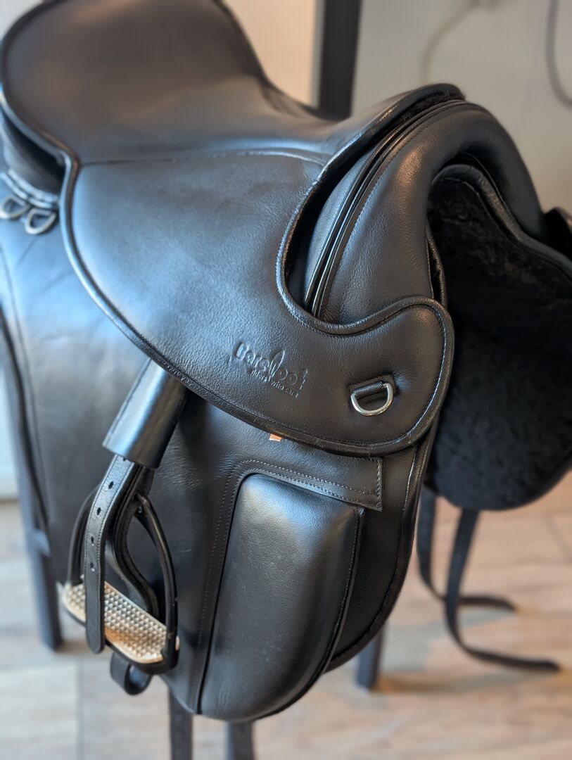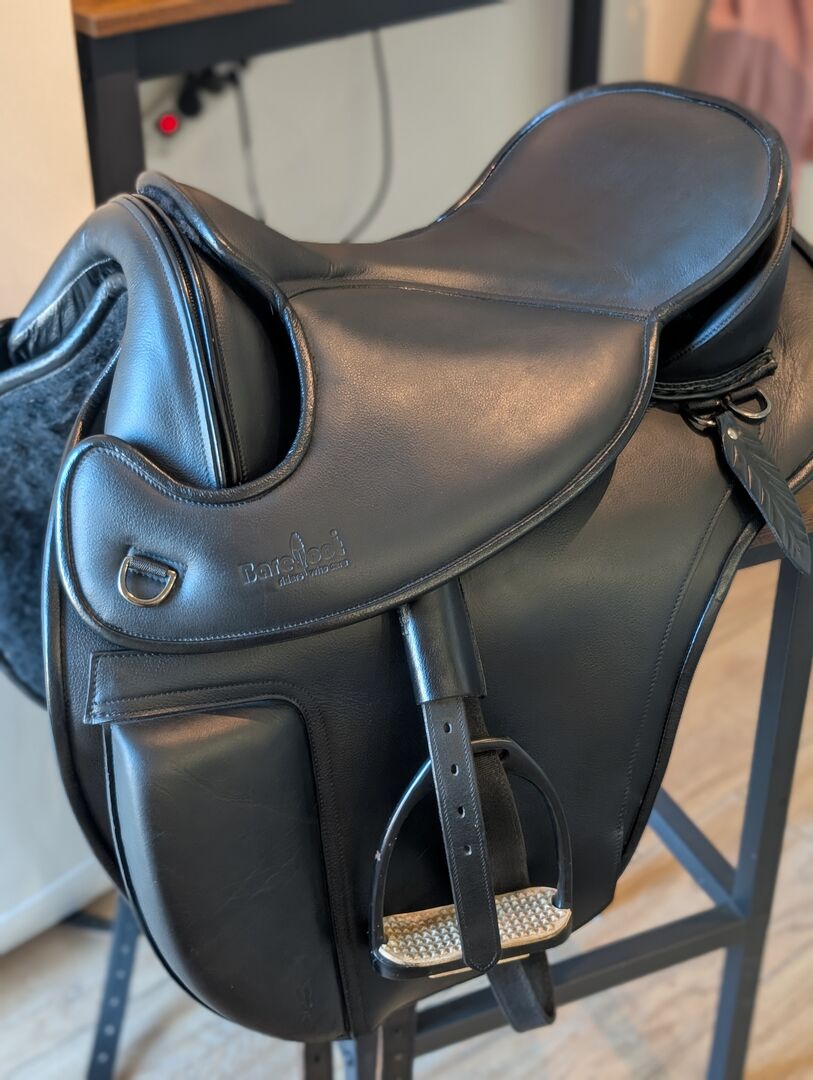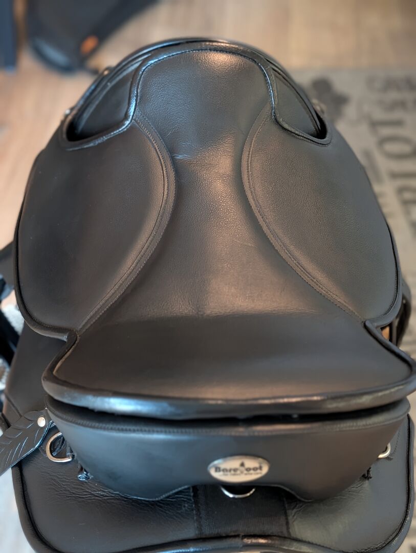 Barefoot Cherokee Classic 1 Nowy stan VPS Air-System - Oferuję moje nowe siodło Barefoot Cherokee Classik z AirSystem + VPS w rozmiarze 1. Jest w absolutnie nowym stanie z akcesoriami, takimi jak strzemiona i strzemiona oryginalne Barefoot w tym Zwiesel MI biały. Siedzisko nie jest jeszcze zużyte, więc siedzi się w nim jak w nowym siodle. Głębokość siedziska nadal dostosowuje się do Ciebie! idealne do jazdy crossowej lub trailowej, a także do skoków w hali i mniejszych skoków lub ujeżdżenia wygodne siedzisko zapewniające poczucie bliskości konia wytrzymała skóra bydlęca o otwartych porach, odporna na zabrudzenia wyściełane nakolanniki