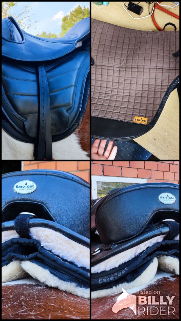 Jest to Cheyenne z czarnej miękkiej skóry, rozmiar 2 z czerwonym Zwiesel. Według numeru siodło jest z 2012 roku, ale nie można tego stwierdzić patrząc na nie. Wręcz przeciwnie, nawet nie siedziało prawidłowo i wykazuje bardzo niewiele śladów użytkowania. Skóra jest w absolutnie idealnym stanie. Kupiłem nowy ochraniacz bioder bezpośrednio od Barefoot, który będzie teraz wliczony w cenę. W zestawie znajduje się pasek neoprenowy (długość 80 cm).