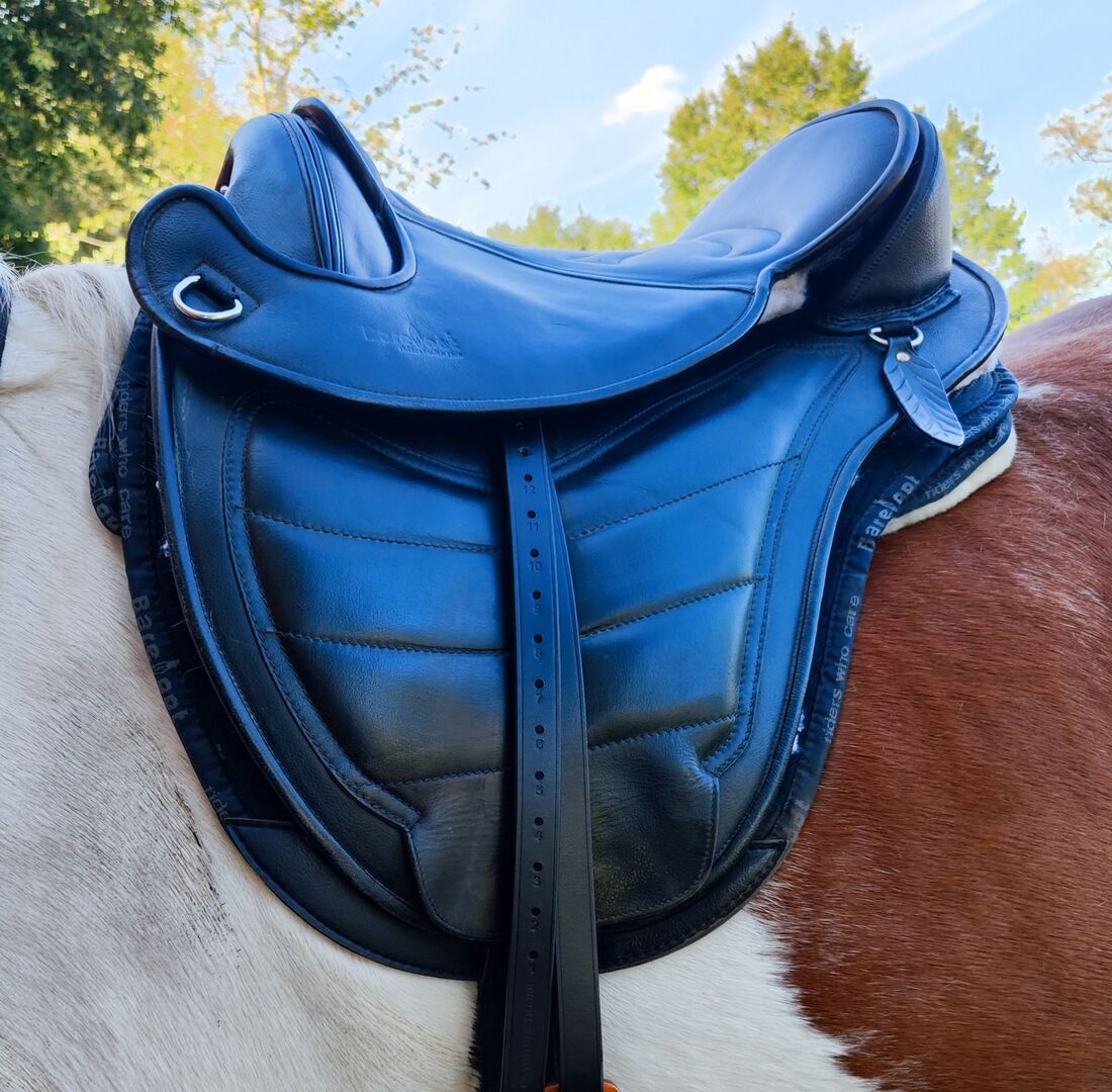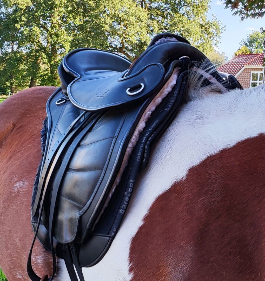 Barefoot Cheyenne / Rozmiar 2 / Skóra / VPS / Hipsaver - Niestety muszę pozwolić temu świetnemu siodłu odejść, ponieważ nie pasuje do mojego konia. Niestety nie chodzi w nim zbyt dobrze i mam wrażenie, że nie czuje się w nim komfortowo. Bezpośrednie porównanie z naszym siodłem ujeżdżeniowym dało mi to jasno do zrozumienia, a ponieważ nie chcę narzucać mojemu koniowi niczego, co nie sprawia, że czuje się dobrze, Barefoot musi się ponownie wyprowadzić.