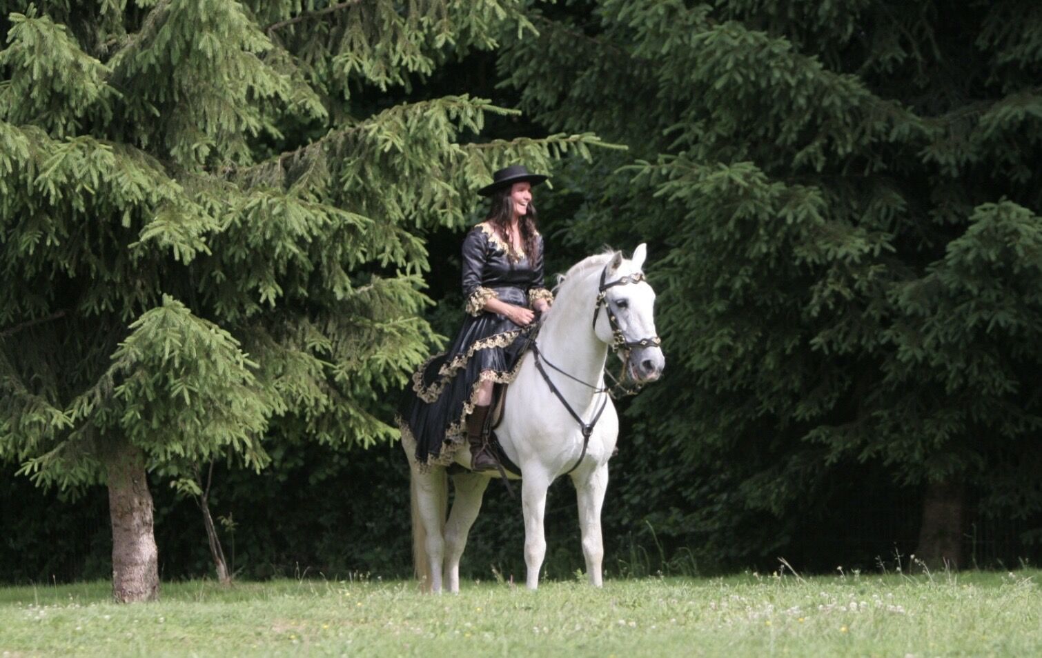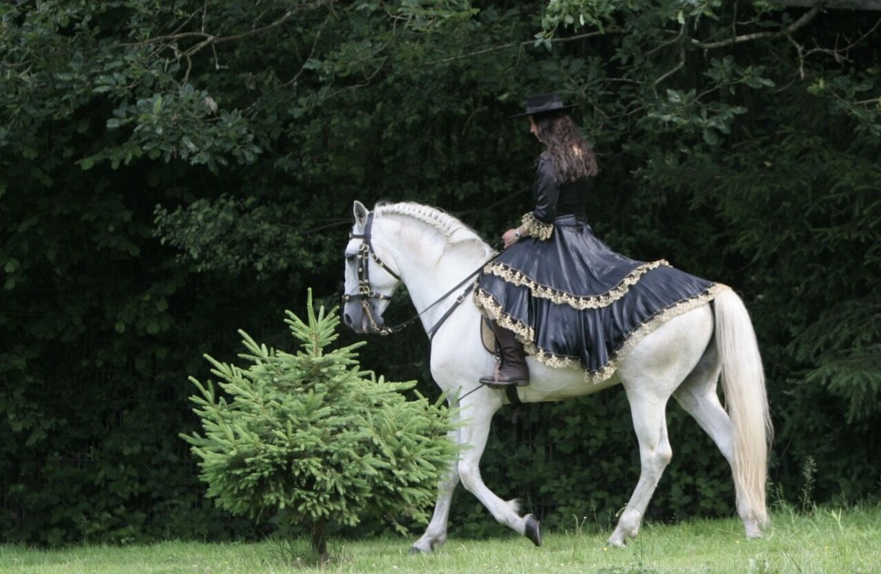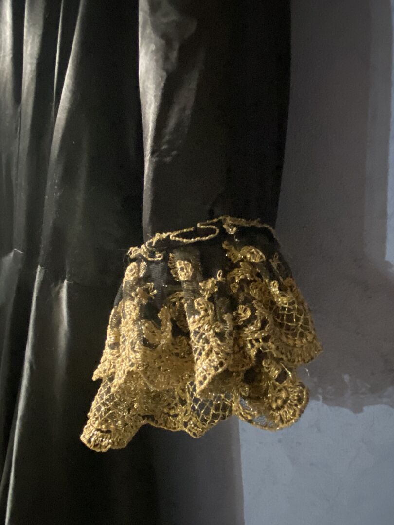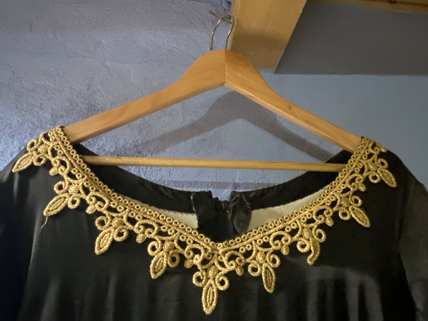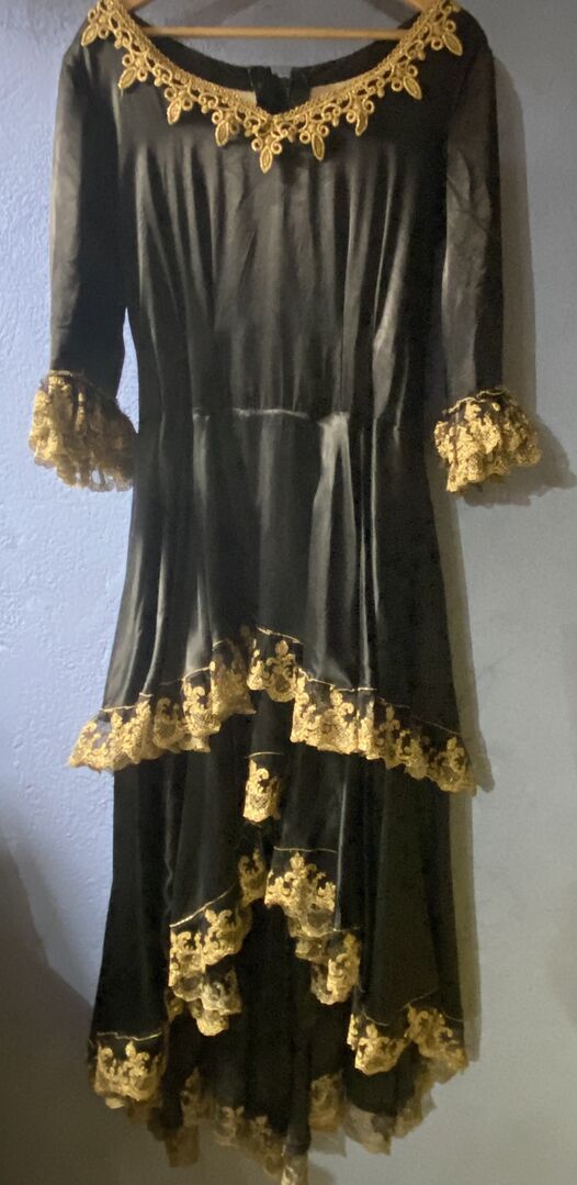 Barokowa sukienka do jazdy konnej - Na sprzedaż barokowa jedwabna sukienka jeździecka rozmiar M czarna ze złotą koronką miałam ją na sobie tylko dwa razy Stan - bardzo dobry bez dziur i wad.... Niestety już na mnie nie pasuje Mam również niemiecki adres do wysyłki !!!