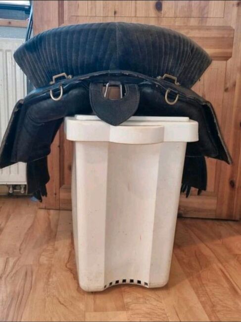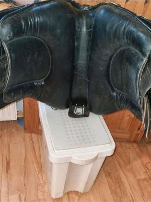 Barokowe siodło - Sprzedam moje UŻYWANE siodło barokowe. Nadaje się do rozmiaru 40/42 maksymalnie 44, ale wtedy dobrze trzyma się na udach między galeriami. Sam je kupiłem używane. Ze względu na rozmiar i wagę najlepiej byłoby go odebrać. Wysyłka kosztuje około 20 €, jeśli nie możesz go odebrać. W innym ogłoszeniu sprzedaję również zestaw uzdy i napierśnika. Jeśli kupisz zestaw siodła i napierśnika, zapłacę za przesyłkę.