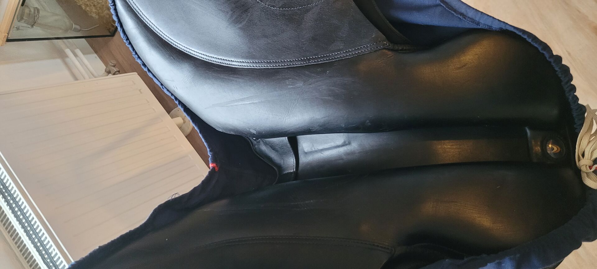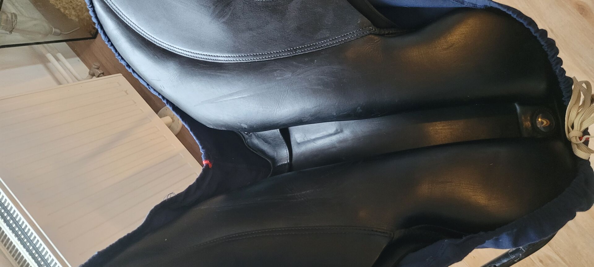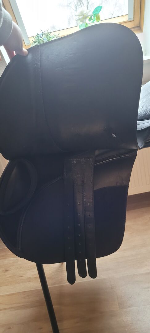 Bates Caprilli Event Jumping Saddle 17,5 inch 44cm mało używane - Kupione tylko jako drugie siodło do skoków. Niestety nie było prawie w ogóle używane i jest za słabe, żeby wisiało. Jest bardzo dobrze regulowane za pomocą systemu EASY-CHANGE Gullet System. Posiada również innowacyjny system Cair, który idealnie dopasowuje się do konia.