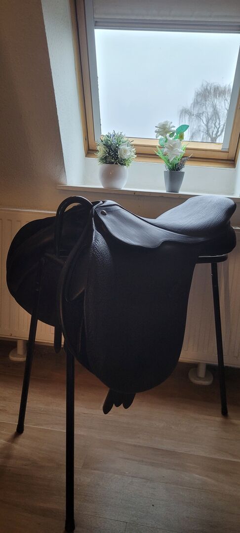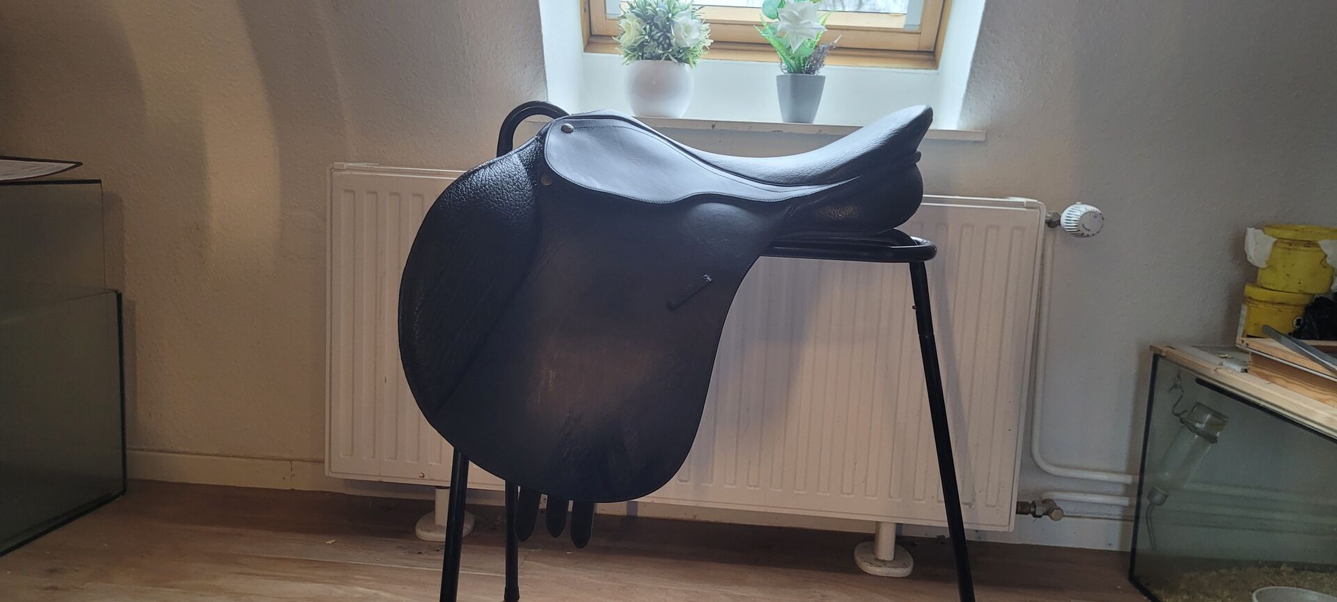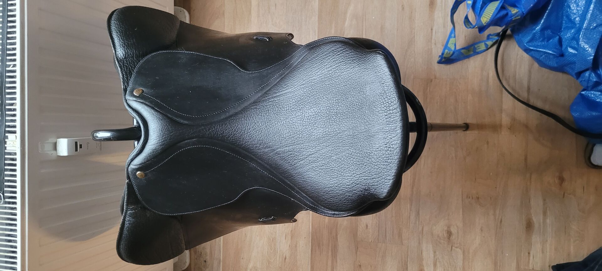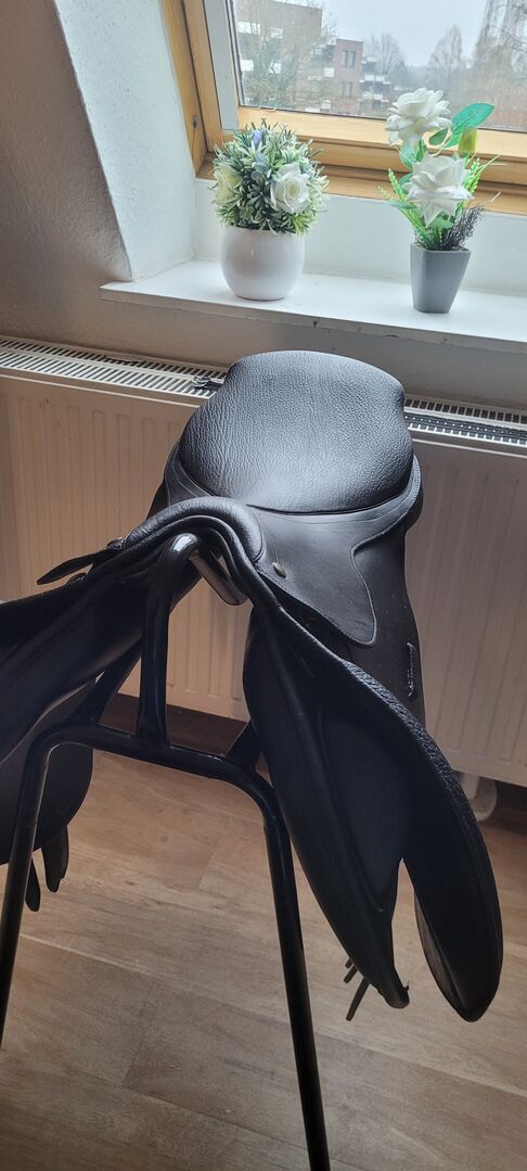 Bates Caprilli Event Jumping Saddle 17,5 inch 44cm mało używane - Kupione tylko jako drugie siodło do skoków. Niestety nie było prawie w ogóle używane i jest za słabe, żeby wisiało. Jest bardzo dobrze regulowane za pomocą systemu EASY-CHANGE Gullet System. Posiada również innowacyjny system Cair, który idealnie dopasowuje się do konia.