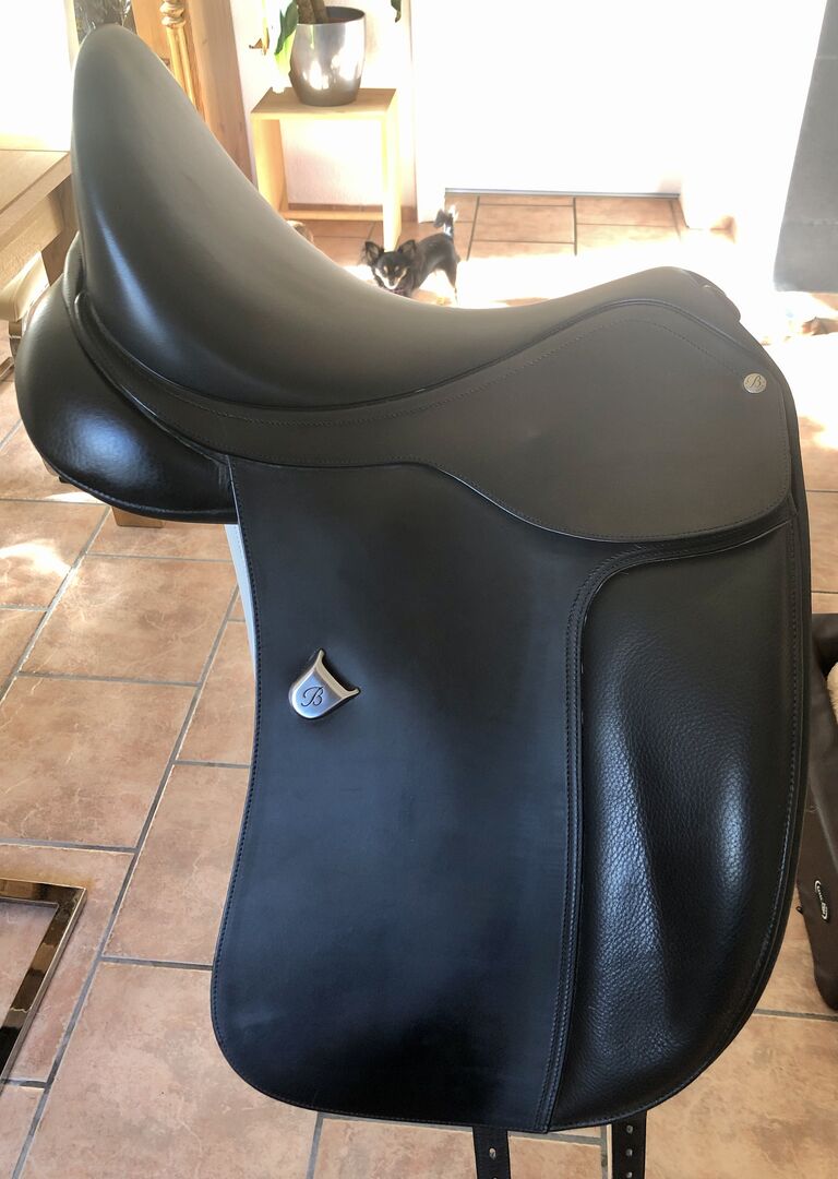 BATES Siodło ujeżdżeniowe 17,5 czarne Neuw. - Bardzo mało używane wysokiej jakości siodło ujeżdżeniowe renomowanego producenta Bates. Skóra naturalna, doskonałe dopasowanie, wymienny wlew, panele na rzepy, możliwość indywidualnej regulacji. Dzięki systemowi Cair siodełko ma bardzo dobry rozkład nacisku i uzyskało najlepszy wynik w teście Cavallo, jeśli chodzi o rozkład nacisku.