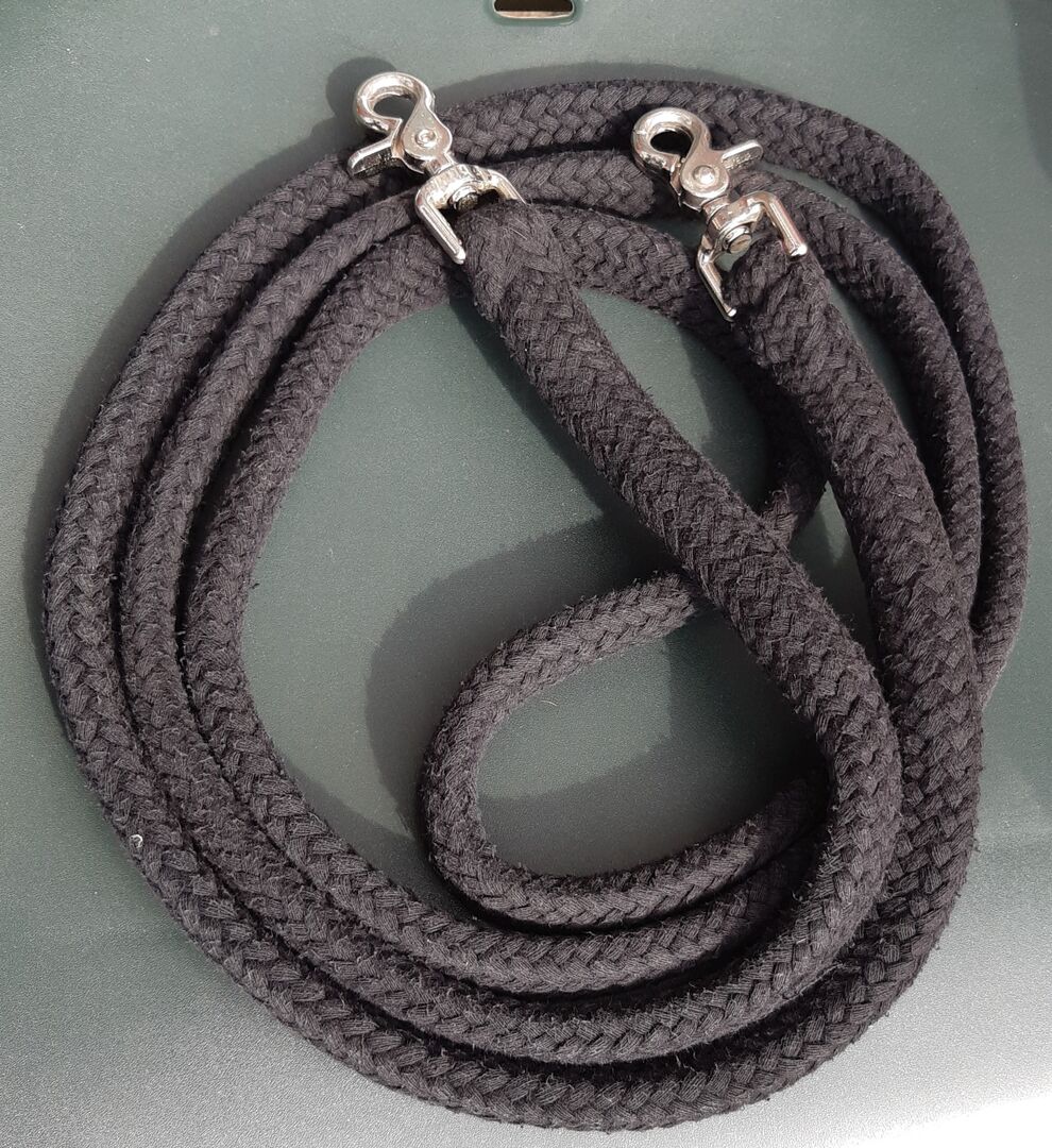 Bawełniane lejce / lejce wykonane z bawełny, 300 cm, zamknięte, czarne - Dobry stan z niewielkimi śladami zużycia.