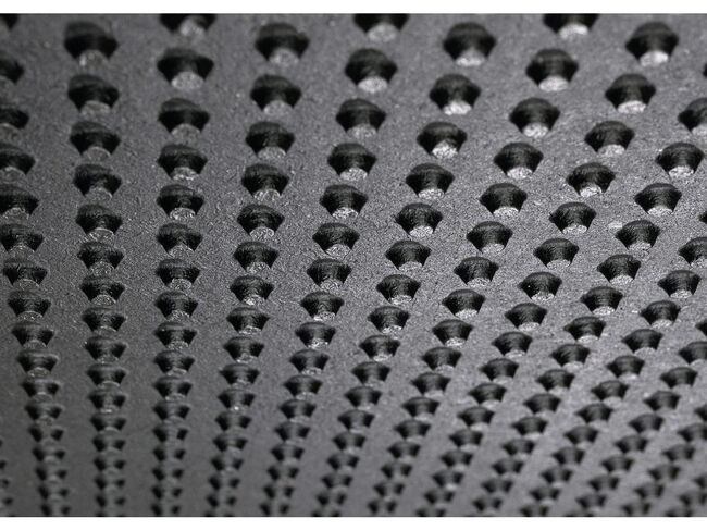 Powierzchnia: profil diamentowy ze zoptymalizowaną pod kątem zużycia warstwą wierzchnią Spód: Profil z wgłębieniami Grubość: 24 mm Wymiary: 1 m × 1 m, profilowany z 4 stron