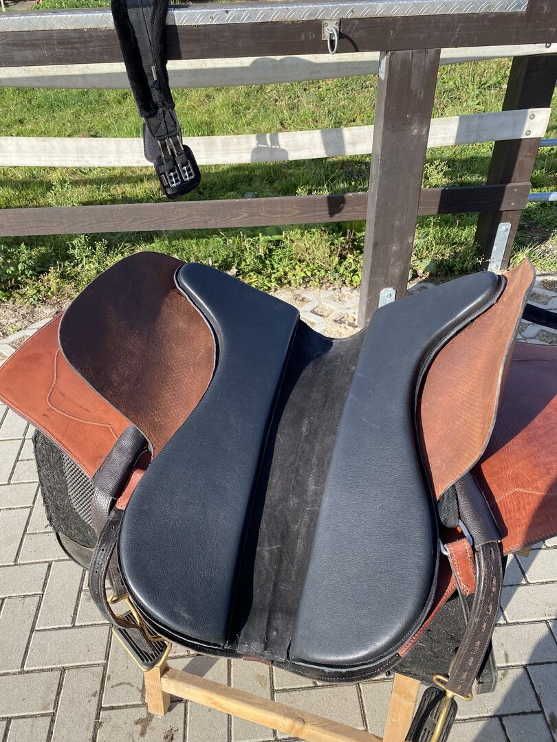 Bezdrzewna podkładka pod siodło, taka jak Hidalgo, z panelami na rzepy - Sprzedaję to mało używane siodło, które można dopasować do każdego grzbietu za pomocą paneli na rzepy lub używać jako podkładki jeździeckiej bez nich. Tak właśnie go używałam. Na sprzedaż bez podkładki westernowej. Opcjonalnie z popręgiem siodła 100cm. Wymiary widoczne na zdjęciach. W razie pytań proszę o kontakt.