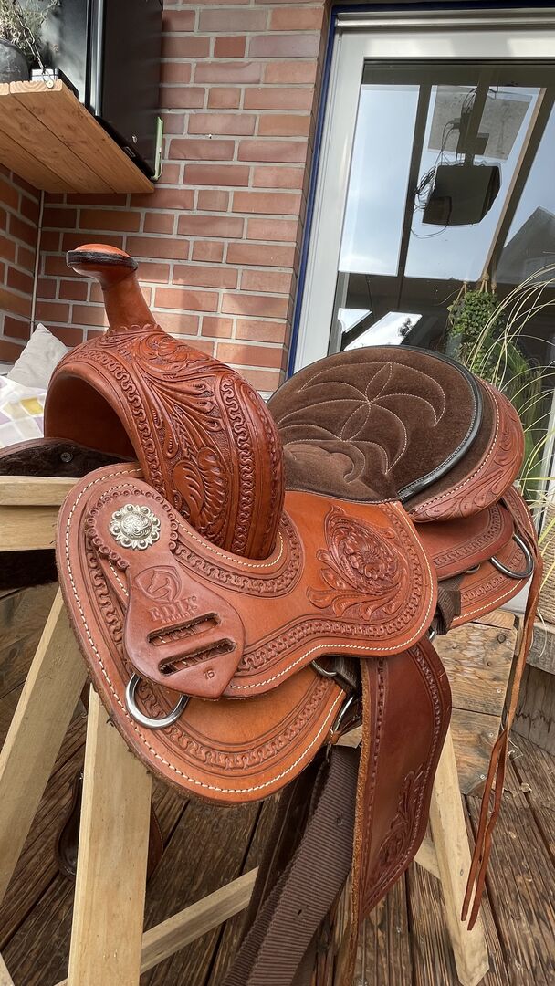 Bezdrzewne siodło westernowe - Sprzedaję moje westernowe siodło "Oakley" marki Edix. Siodło ma 16 siedzisk. Szczególną cechą tego siodła jest to, że jest bezdrzewne i dlatego można je dostosować do grzbietu każdego konia. Jest również znacznie lżejsze niż zwykłe siodło westernowe.
