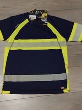 Dane techniczne: Norma: EN ISO 20471 Skład tkaniny: 100% poliester Gramatura materiału / gęstość tkaniny: 155 Standard odzieży: standard UV 801 Pranie: 40 °C pranie kolorowe Kolor: granatowy / żółty Płeć: Uni