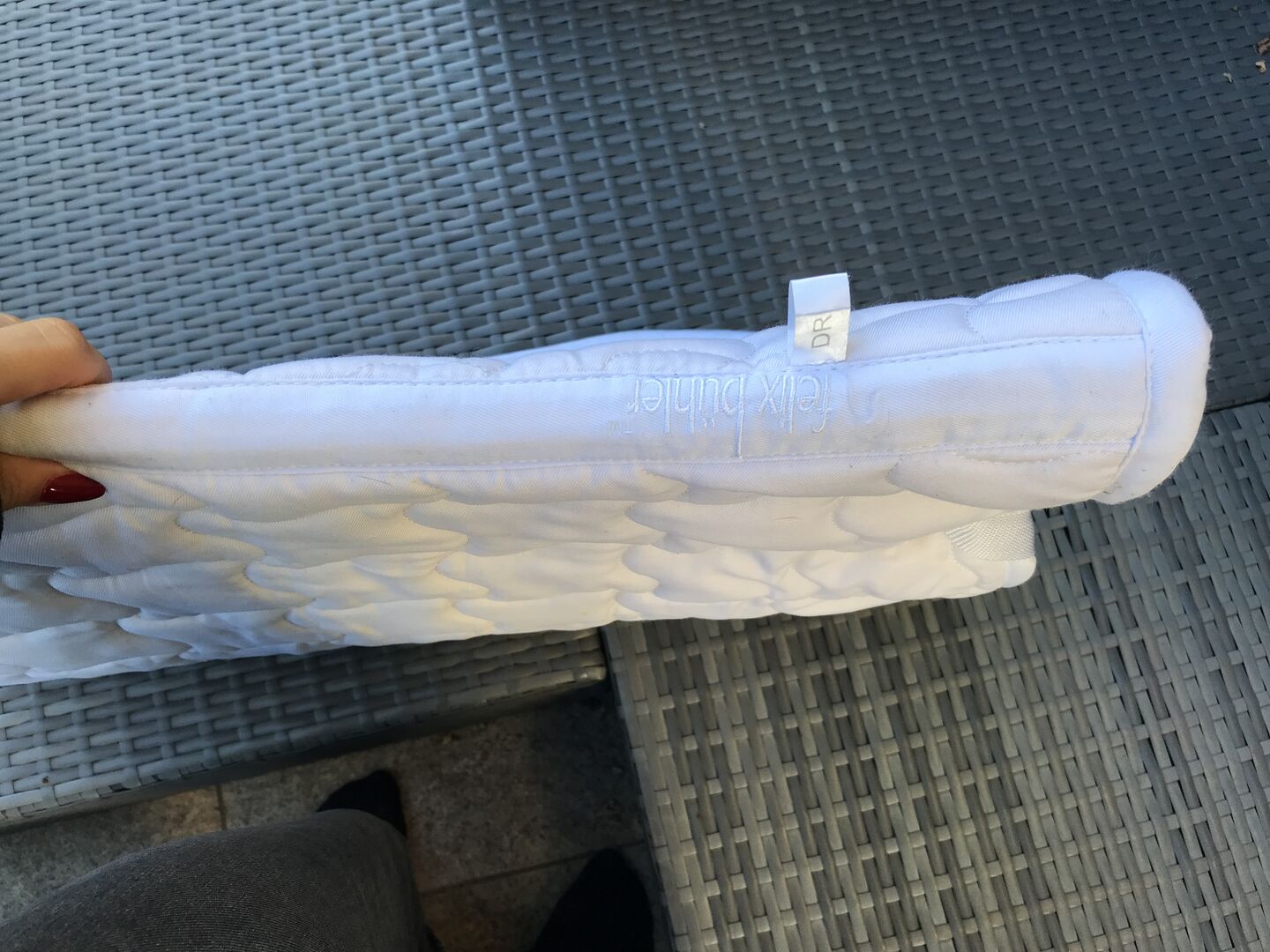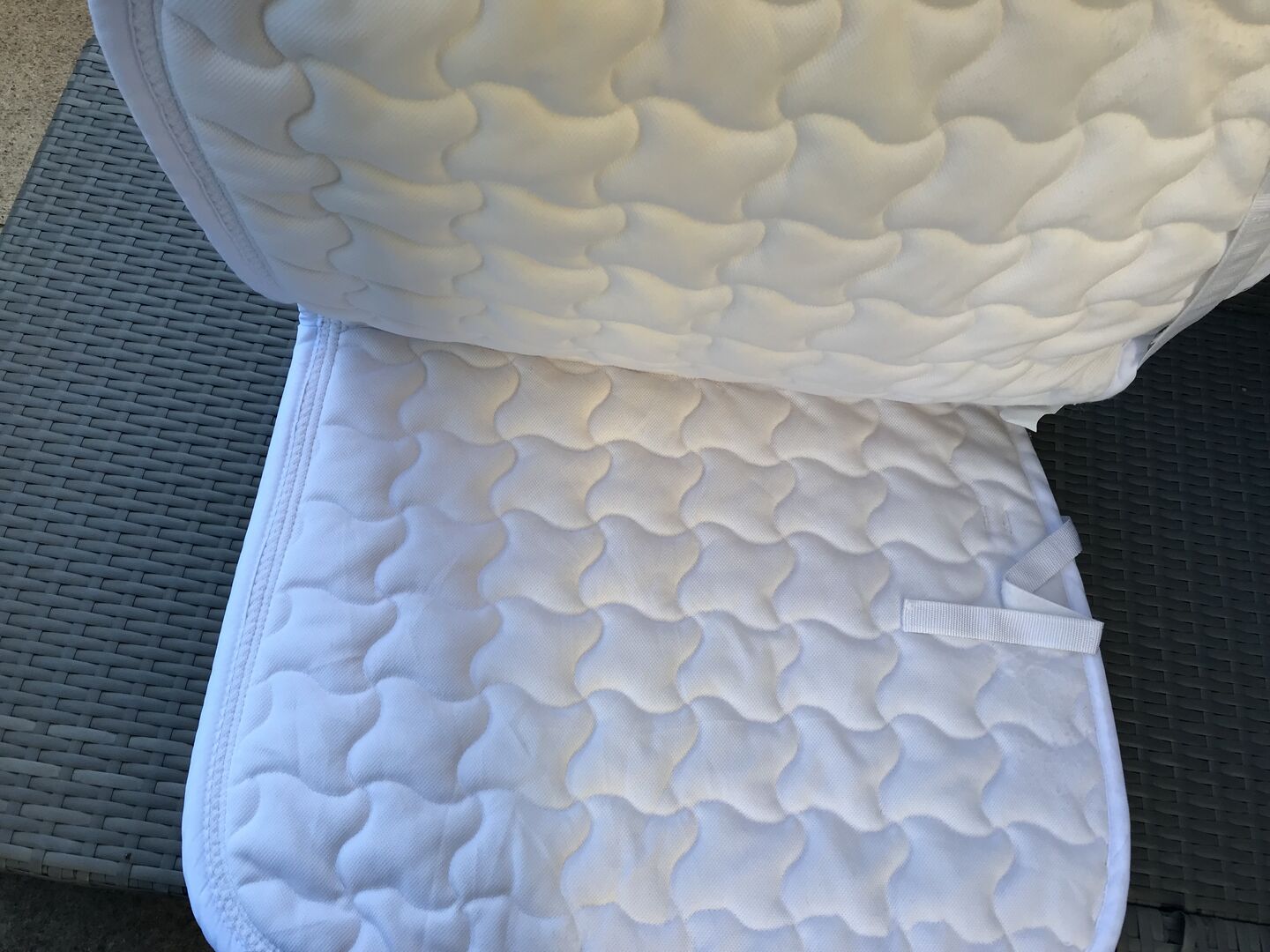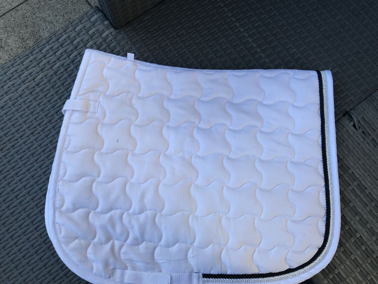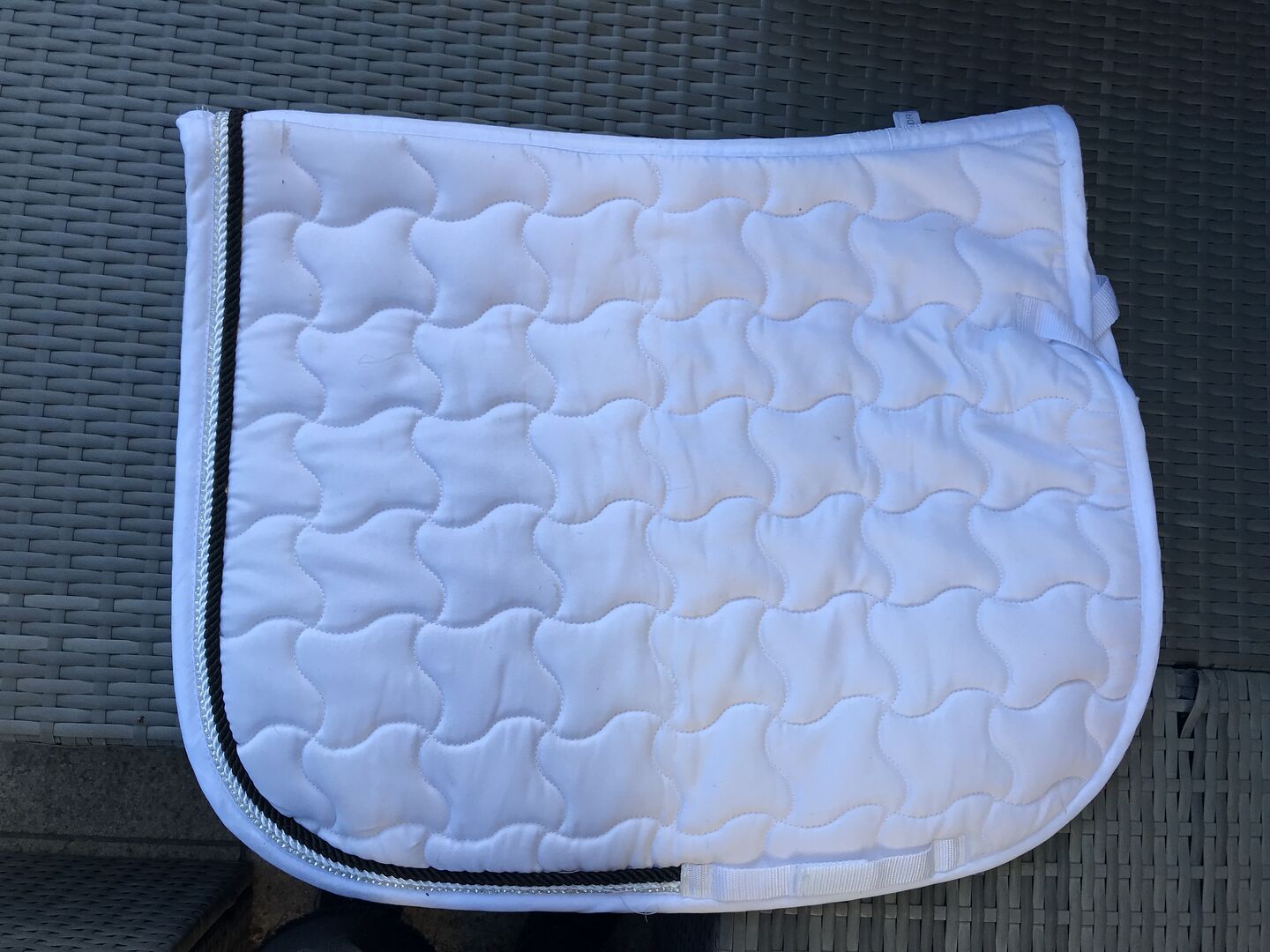 biała podkładka pod siodełko tuningowe - Podkładka pod siodło ujeżdżeniowe, biała z czarną obwódką, jak nowa i wyprana