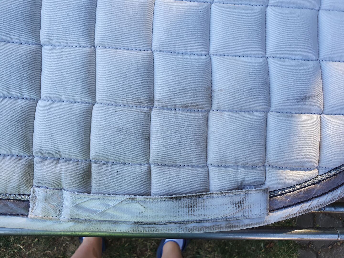 Ponieważ podkładka pod siodło była często używana na zawodach, widać na niej ślady zużycia (patrz zdjęcia).