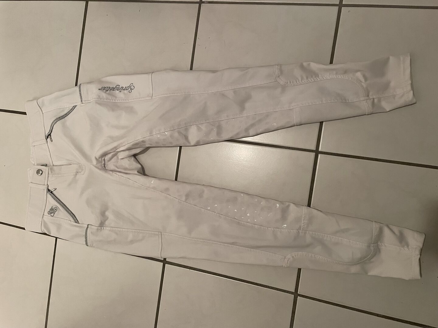 Białe bryczesy turniejowe Springstar "Herzstück" rozmiar 36 pełne siedzenie połysk - Sprzedaż tych bryczesów pokazowych Springstar w rozmiarze 36.