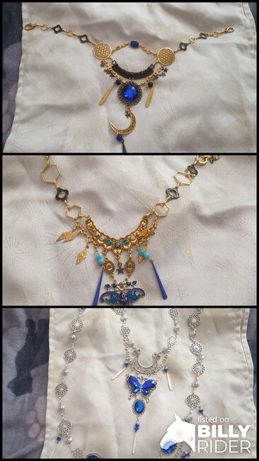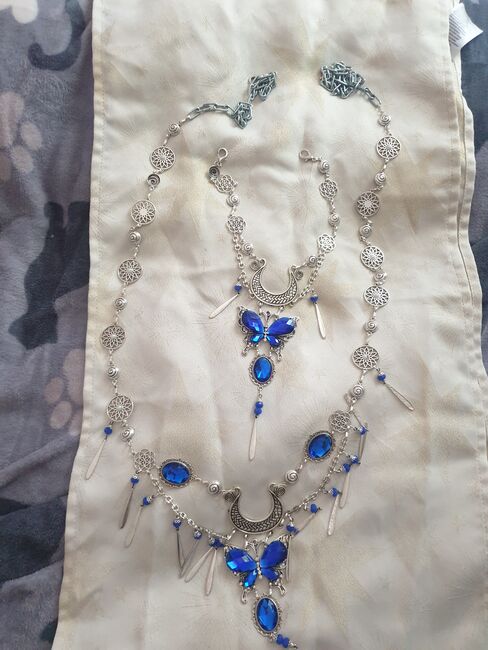 Biżuteria na klatkę piersiową i czoło - Biżuteria na klatkę piersiową i czoło w kolorze królewskiego błękitu / srebra. Biżuteria na czoło w kolorze niebieskim/brązowym