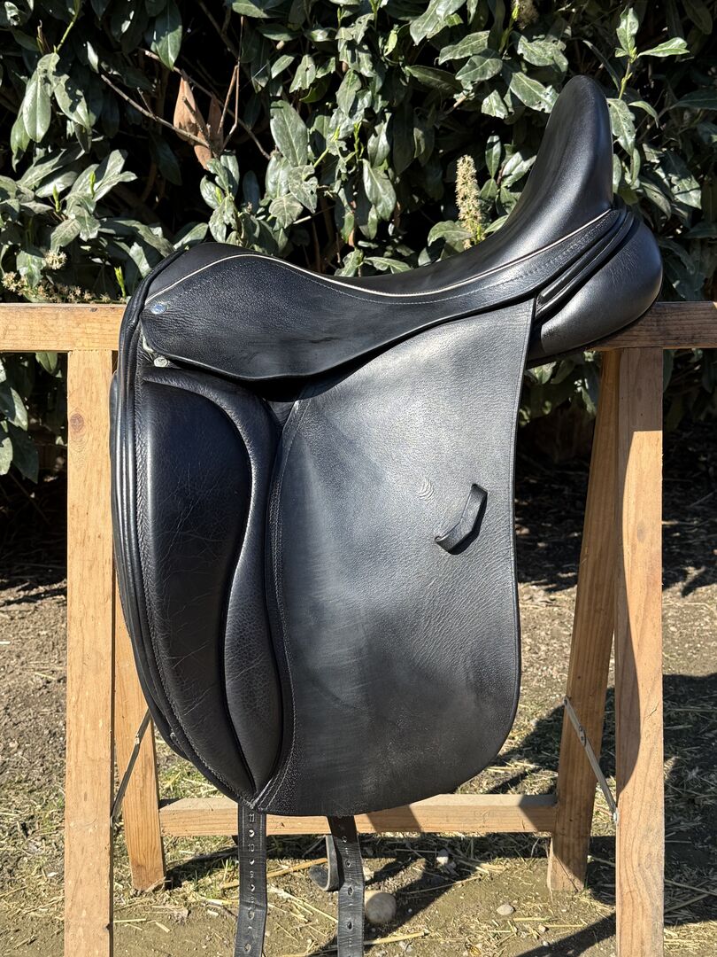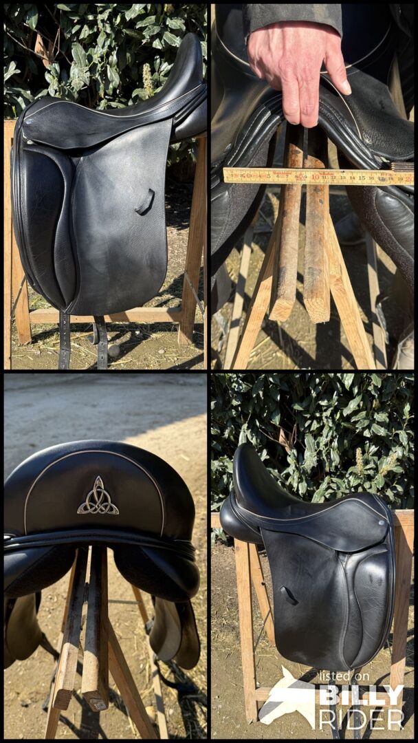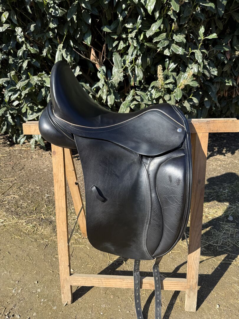 Pierwsza ręka. Dostępna faktura z 2021 roku. Każdy, kto zna markę, wie, że jest to bardzo wysokiej jakości siodło ujeżdżeniowe. Głębokie siedzisko. Świetna skóra. Beżowa lamówka jest wizualną atrakcją. Emblemat Bliss na tylnej lamówce.