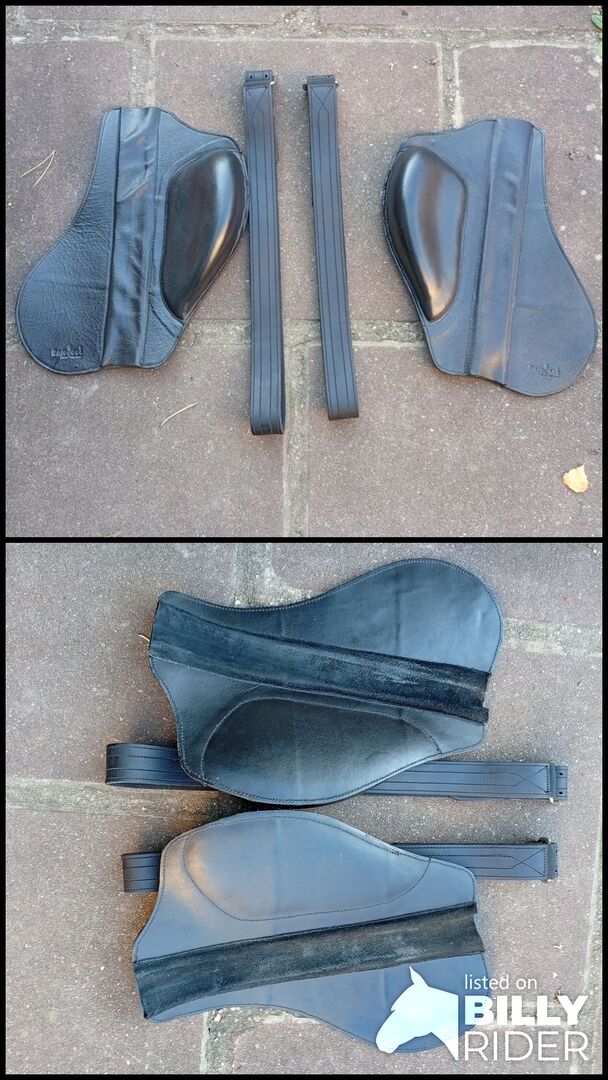 Błotnik z rolkami kolanowymi wraz z paskami czarny jak nowy Barefoot lub podobny. - Na sprzedaż błotniki Barefoot z rolkami kolanowymi, czarne, z oryginalnymi pasującymi paskami o szerokości 4 cm. NP bez pasków wynosi 135,- € Może być również stosowany do innych siodeł z wąskimi paskami. Opis przedmiotu od producenta: "Błotniki ze zintegrowanymi rolkami kolanowymi oferują nie tylko znacznie większe bezpieczeństwo - w terenie i podczas codziennych treningów, jeździec siedzi również znacznie wygodniej. Obszar kolana jest uniesiony przez miękki ochraniacz kolana, a tym samym wspiera zamknięcie kolana jeźdźca. Błotniki "SUPPORT" mają wgłębienia z przodu i z tyłu, przez które można włożyć strzemiona. Skóry strzemion nie są zawarte w dostawie. Nadaje się do wszystkich siodeł bez podkolanówek, do strzemion o długości 140 cm (szerokich lub wąskich)". Wysyłka jest możliwa za zaliczeniem pocztowym. Sprzedaż prywatna, bez gwarancji lub zwrotu.