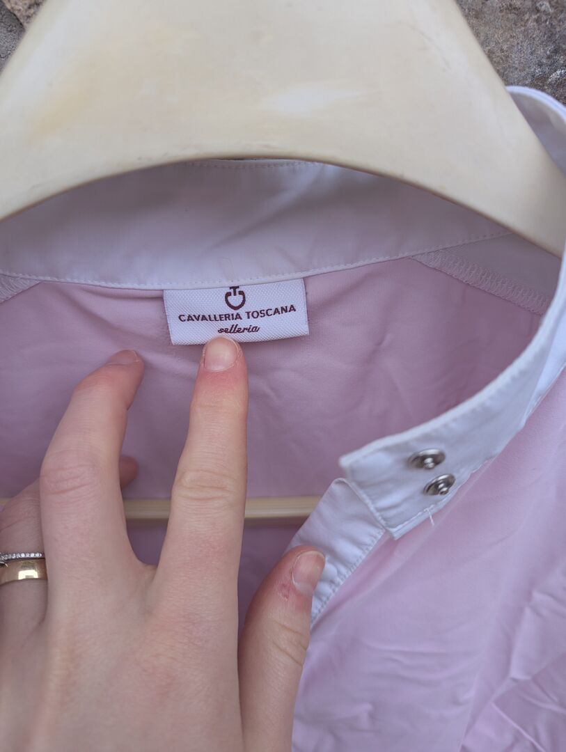 Bluza konkursowa Cavalleria Toscana - Na sprzedaż świetna bluzka konkursowa marki Cavalleria Toscana w kolorze różowym. Rozmiar L. Logo można zobaczyć na prawym ramieniu. Bluzka ma super świetny materiał i jest bardzo wygodna w noszeniu.