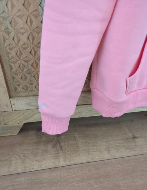 Bluza z kapturem Royal horsemen Valentine Gallop - Bluza z kapturem Royal horsemen w kolorze różowym, rozmiar S. Z nadrukiem na plecach, haftowanymi sercami na kapturze i rękawach, kieszenią kangurką i kapturem. Nowa i nienoszona, prana tylko raz w worku do prania z łagodnym detergentem. Rozmiar nieco większy, pasuje również na 38, bardzo miękka w środku, wysoka jakość wykonania. Jest to limitowana edycja na Walentynki, kolekcja 2026. Oryginalna cena 59€
