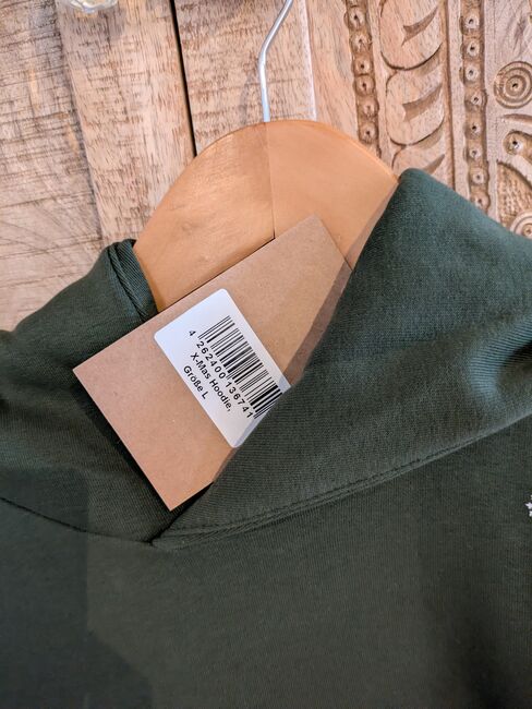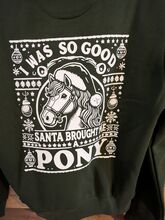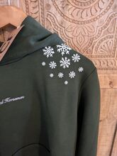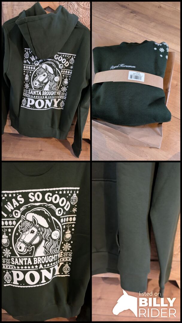 Bluza z kapturem Xmas Pony unisex L - Limitowana świąteczna bluza z kapturem Royal horsemen w kolorze zielonym, rozmiar L. Super uroczy nadruk na lewym ramieniu i plecach. Nowa i nienoszona. Niestety jest na mnie za duża (40/42 lub oversize) i nie można jej wymienić, ponieważ nie ma jej w magazynie. Może ktoś szuka właśnie takiej, wtedy nie muszę odsyłać. Zamówiłem ze zniżką z okazji czarnego tygodnia, więc tutaj jest taniej.