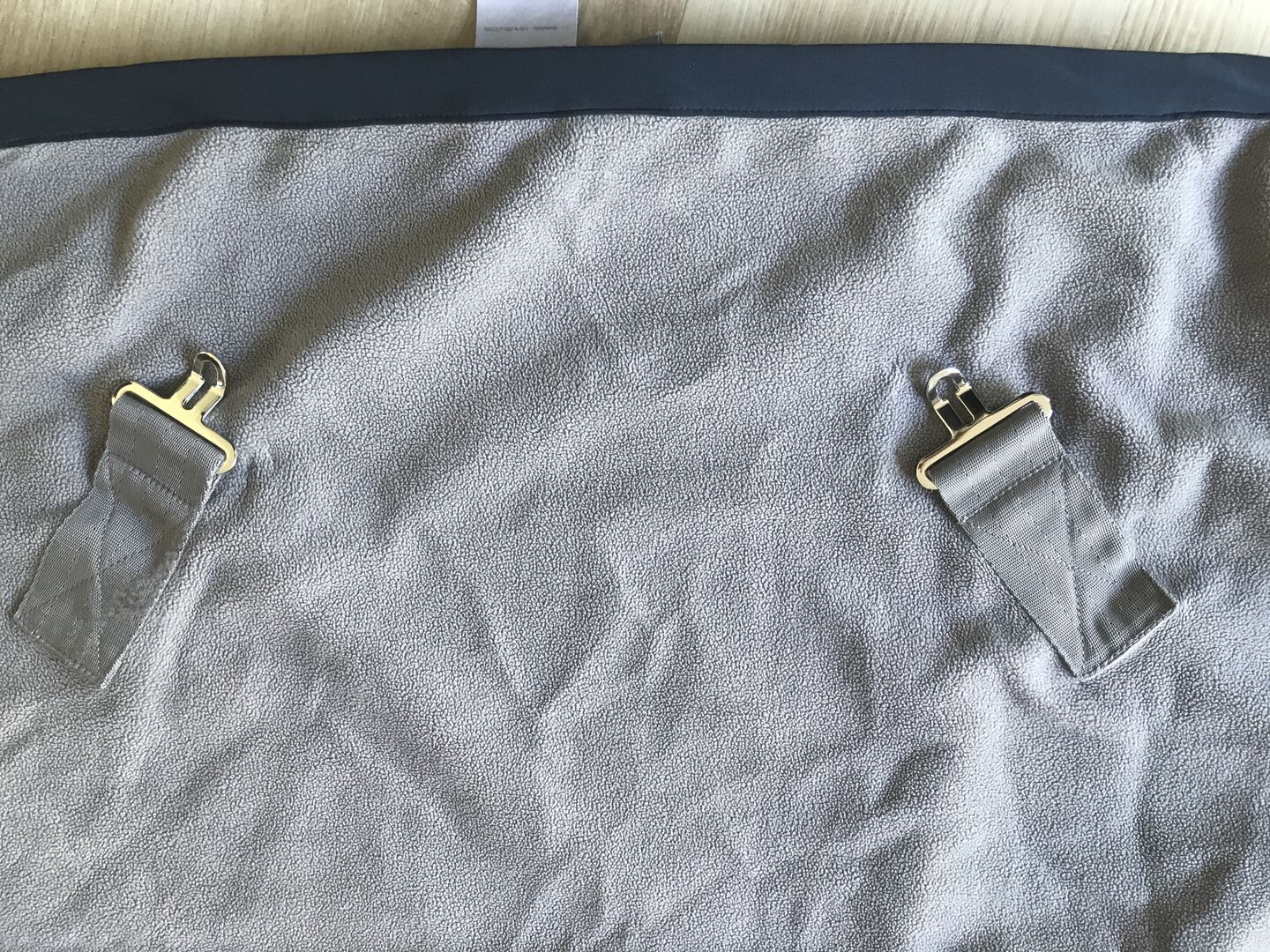 Bluza z pełną szyją / 125 / szaro-niebieski - Przedmiotem sprzedaży jest gruby dywanik przeciwpotny wraz z częścią na szyję. Z mocowaniem części szyjnej do haltera. Paski na brzuch można odpiąć. Dodatkowo z tyłu znajdują się 2 sznurki na nogi. Jedyną wadą jest to, że jeden ze sznurków ogona poluzował się, ponieważ zetknął się z rzepem. Rozmiar wynosi 125. Wysyłka jest ubezpieczona i wliczona w cenę