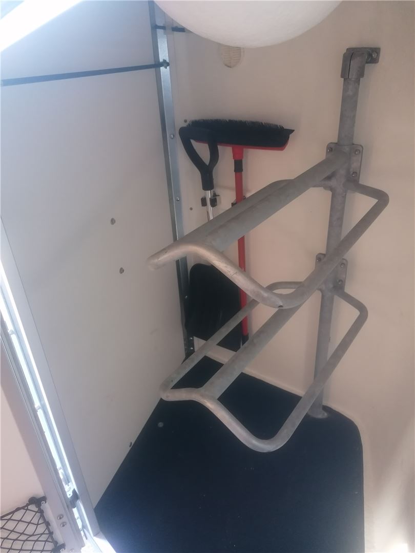 Teraz kilka najważniejszych danych dotyczących AH: - Wymiary: dł. 3050 x szer. 1650 x wys. 2300 mm - dopuszczalna masa całkowita: 2400 kg - Masa własna ok. 890 kg - Ściany ze sklejki w kolorze antracytowym - Maska poliestrowa czerwony metalik - podłoga aluminiowa - Zachodnia sala tresury w pełni wyposażona w miotłę, łopatę, lusterko, siatkę i oświetlenie - zamykana na klucz - System barierek bezpieczeństwa MMS - Podwozie CFF-Plus z amortyzatorami kół, certyfikat na 100 km/h (obecnie brak certyfikatu na 100 km/h) - Automatyczne koło podporowe - Przezroczysta ścianka działowa z PVC - Klejenie i uszczelnianie gumowej podłogi - Guma na klapie przyczepy - Podnośnik plandekowy z wbudowaną siatką - Podnieś klapę - Oświetlenie wewnętrzne - Zabezpieczenie stopni z boku - Zamykany sprzęg przyczepy - Osłona sprzęgu przyczepy - Wykładzina pałąka z przodu - zintegrowane koryta paszowe nad SK - duży motyw zachodni po obu stronach