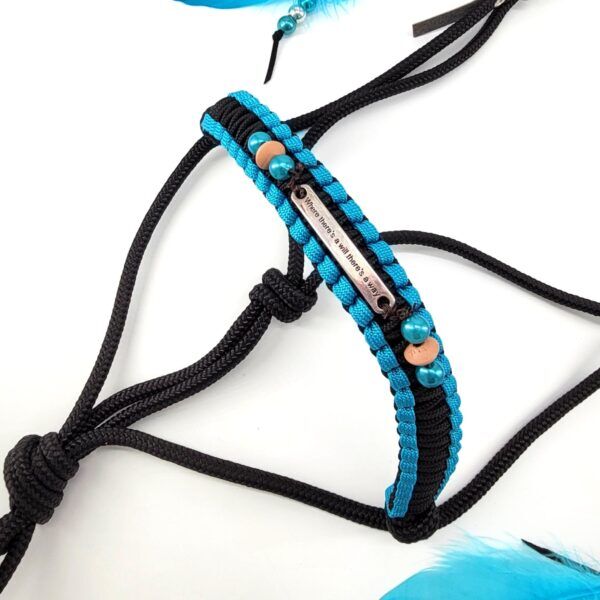 BONITO halter PONY z kółkiem na szyję w kolorze turkusowym - Zestaw kantar BONITO z kółkiem na szyję w kolorze turkusowym Węzłowy kantar z kółkiem na szyję i 2 klipsami sprężynowymi