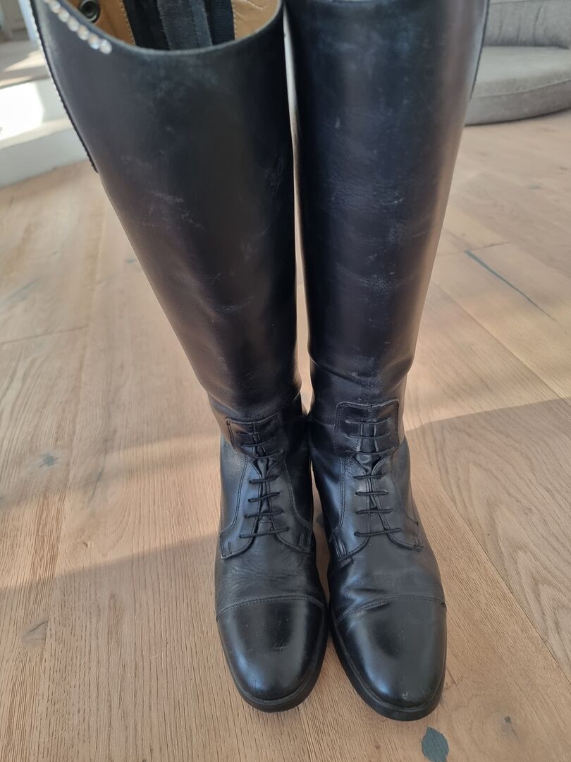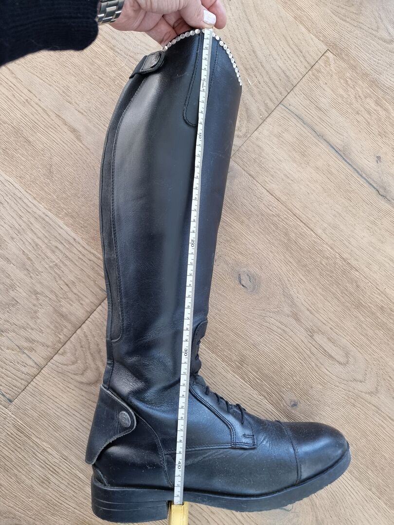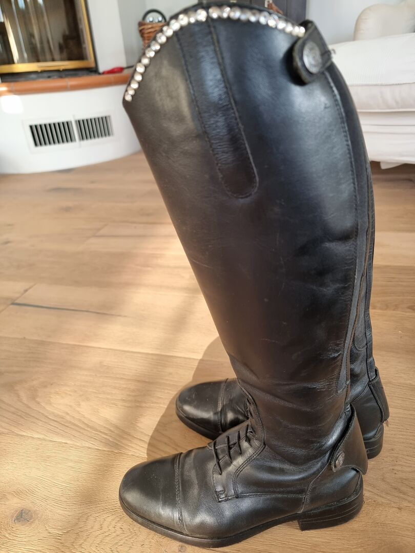 Botki jeździeckie z kamieniami szlachetnymi marki Steeds - Witam, moje nogi urosły szybciej niż się spodziewałem, więc oferuję tutaj moje bardzo dobrze zachowane buty do jazdy konnej marki Steeds. Wykończenie z dżetów przyciąga wzrok. Oczywiście widać niewielkie ślady użytkowania, ale są one nadal w dobrym stanie.