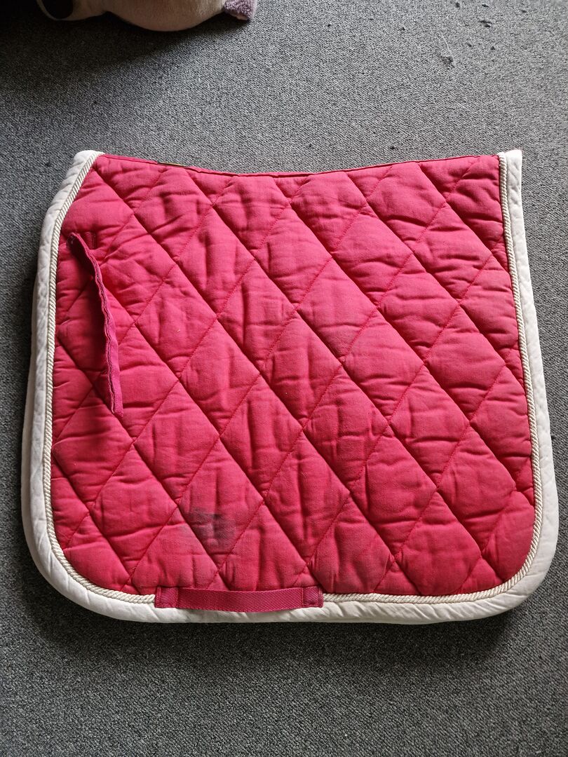 BR Saddlecloth, Raspberry Pink, Full - Na sprzedaż jest ta podkładka pod siodło BR. Jest w idealnym stanie. Bez łez. Tylko zwykłe ślady użytkowania, co widać na zdjęciach. Podkładka pod siodło została wyprana.
