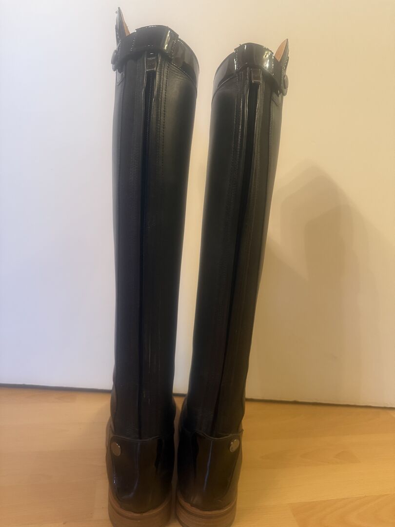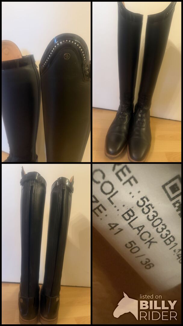 BR skórzane buty jeździeckie rozmiar 41 jak nowe 41/50/36 patent - Na sprzedaż 2x noszone skórzane buty jeździeckie od BR rozmiar 41 wysokość 50 Szerokość 36 (z gumową wkładką)