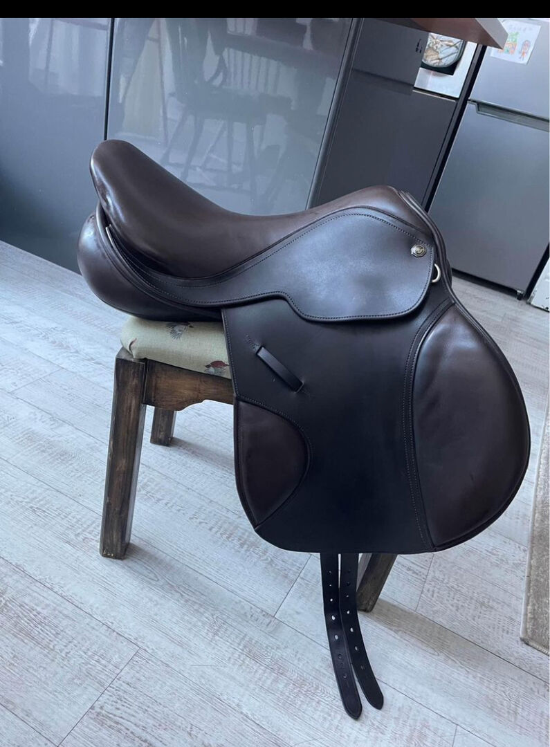 17.5” brown Woodseaves jump saddle