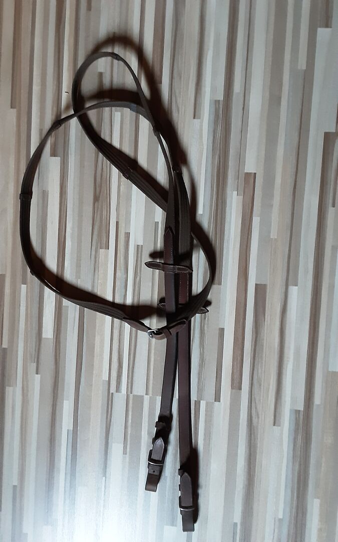 Brązowy snaffle z ozdobnymi przeszyciami w Wb - Oferuję mój brązowy nachrapnik firmy Cama z beżowymi przeszyciami. Snaffle jest wyposażony w angielską opaskę na nos, która biegnie wokół zewnętrznej strony szyi, powyżej wyściółki. Sprzedaję uzdę wraz z wędzidłami.