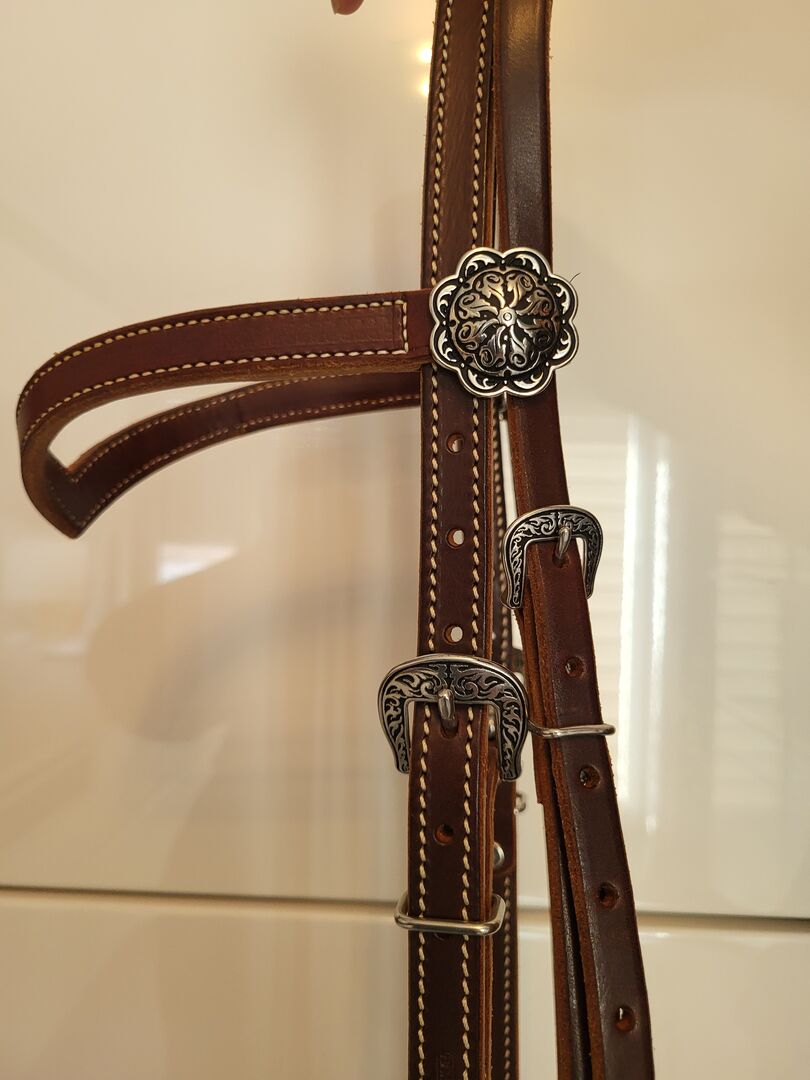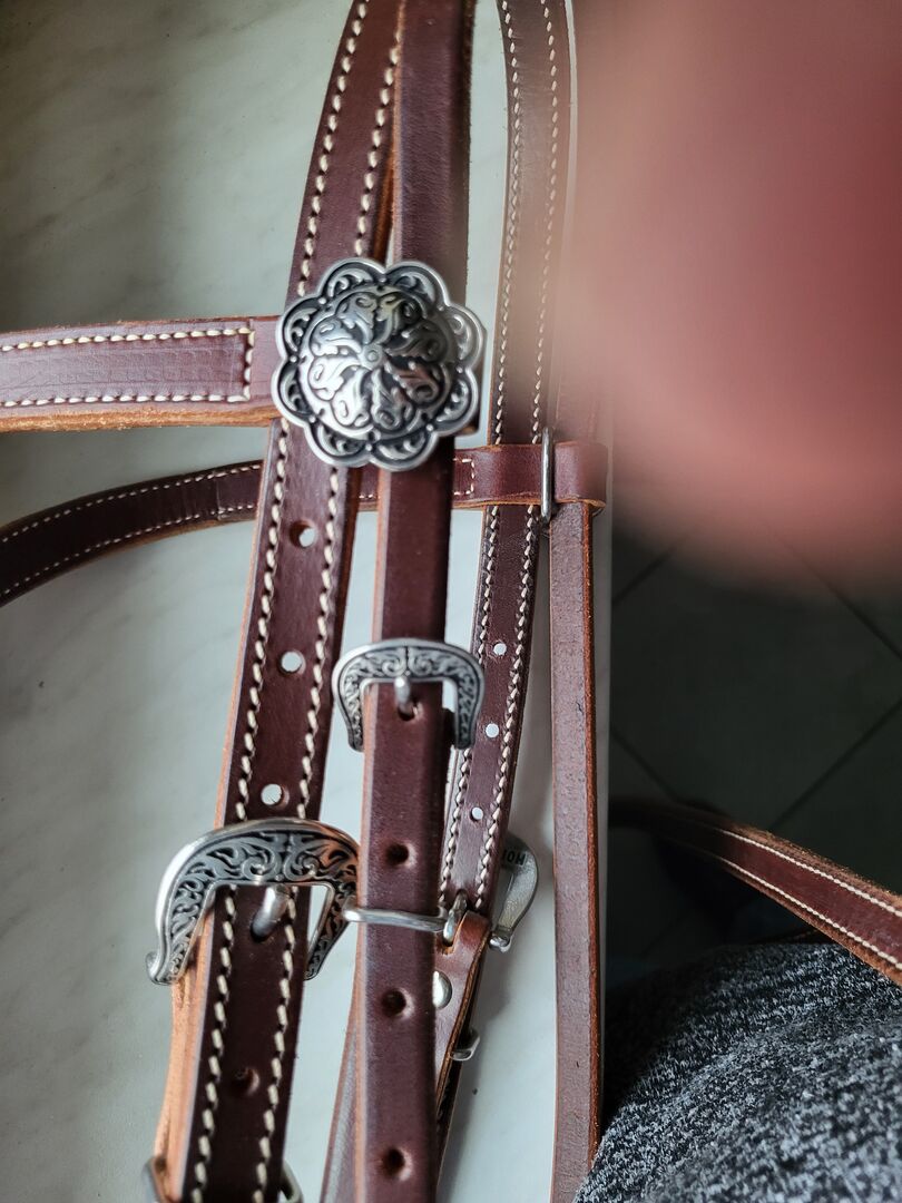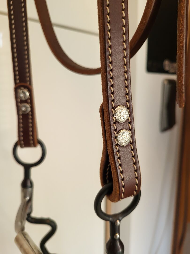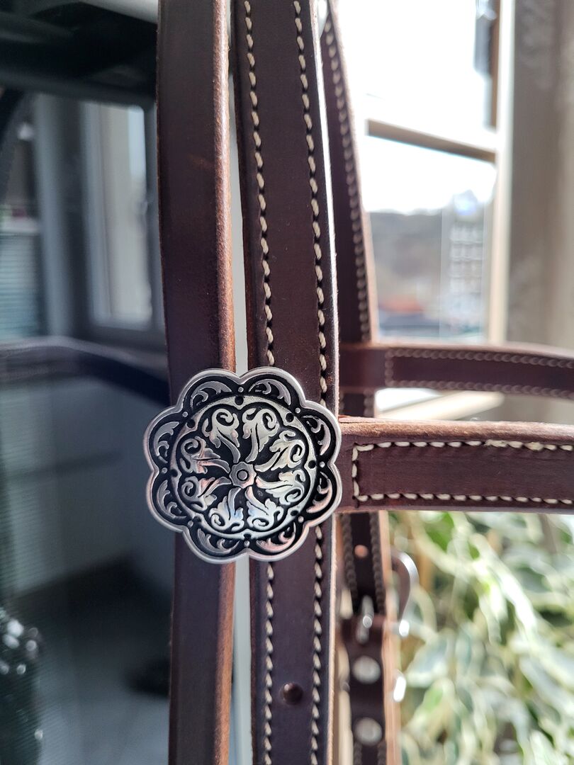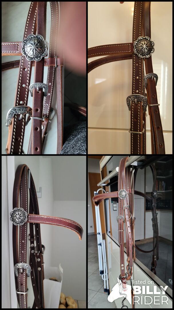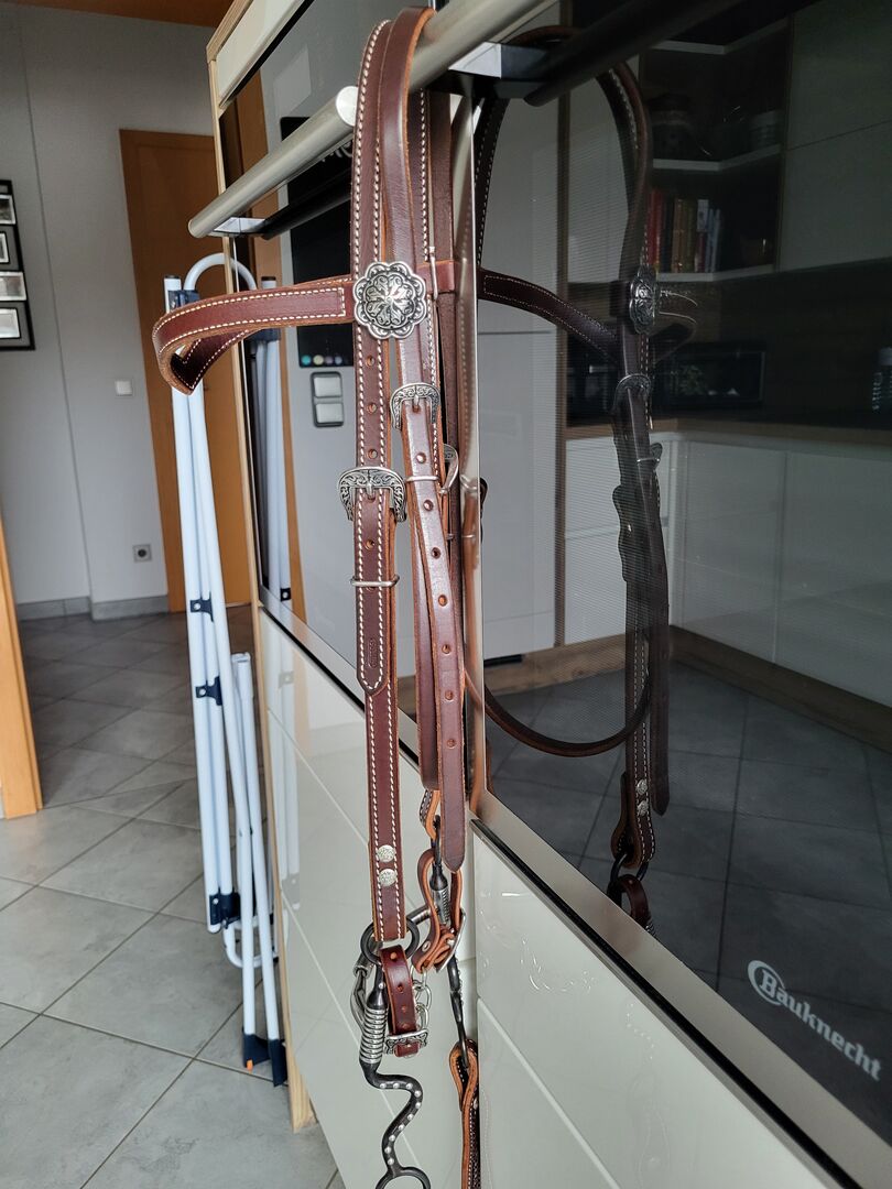 Bridle Western - Sprzedaję moją nową, nieużywaną uzdę westernową wykonaną z najlepszej skóry i z pięknymi zdobieniami. Została kupiona w Amerikana i nie jest tanim przedmiotem. Uzda NP: 259€ Wodze NP: 199 € (łącznie 458 €) RRP: 199€
