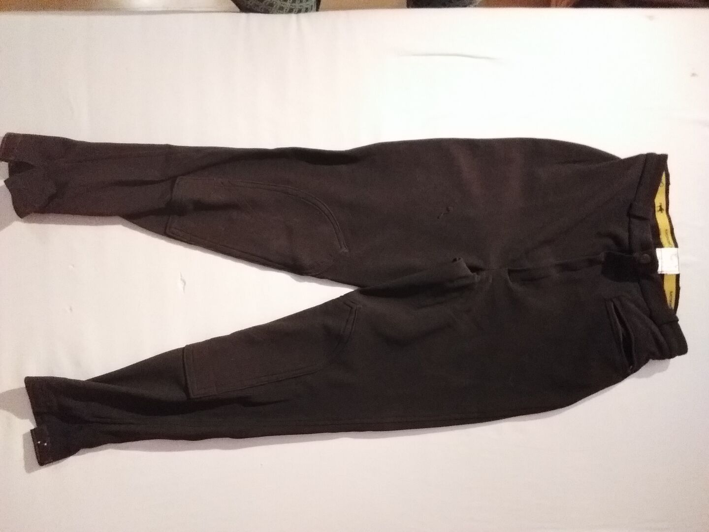 Bryczesy - Bryczesy jeździeckie mało noszone z Manjoman (ES) orentoile na sprzedaż w rozmiarze 44 ciemnobrązowe z kieszenią na zamek z przodu po prawej stronie regulowane na nogawkach za pomocą rzepów A także wzmocnienia w wewnętrznej części uda Niewielkie oznaki zużycia