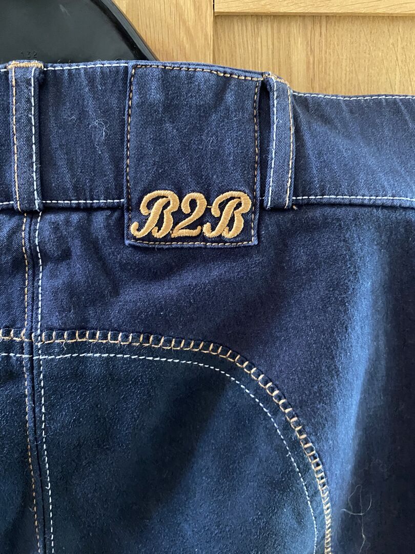 Bryczesy Back2Back z pełnym siedziskiem rozmiar 36 - Bryczesy z pełnym siedziskiem w dżinsowym stylu z kolorowymi kontrastowymi szwami