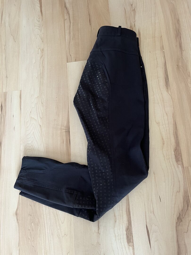Bryczesy ByWater - Na sprzedaż bryczesy w dobrym stanie, z pełnym siedziskiem ByWater z granatowego materiału przypominającego Softshell, z pełnym siedziskiem wykonanym z Gripu. Rozmiar 36, regular fit.