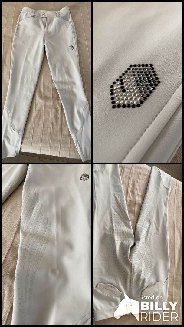 Bryczesy damskie, biały/beżowy, rozmiar 34, NOWE - Sprzedaję nienoszoną, bardzo dobrej jakości parę bryczesów Samshield. Kolor jest bardzo jasnobeżowy, prawie biały. Materiał jest niezwykle wygodny! Bryczesy nie widziały jeszcze stajni/konia, przymierzyłem je tylko raz w domu, ale niestety nie pasują na mnie.