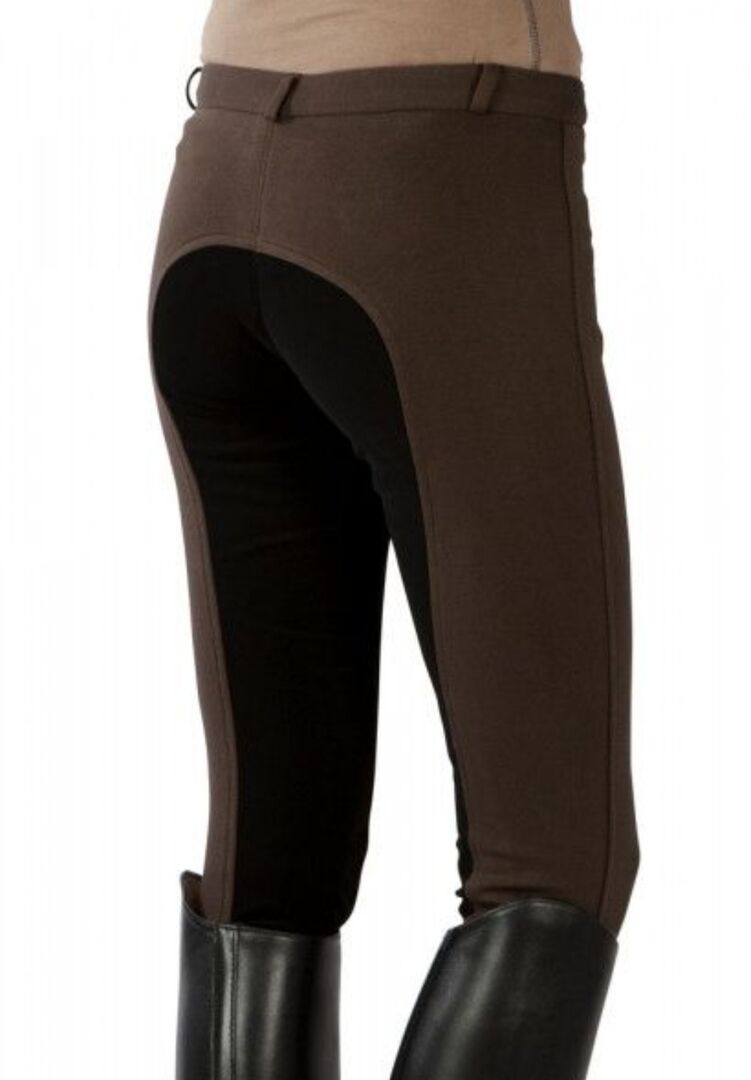 Bryczesy dziecięce - Wyjątkowo długie bryczesy wykonane z elastycznej mieszanki bawełny i elastanu, z nadającym się do prania imitacją skóry, pełnym siedziskiem, wytrzymałymi szlufkami na pasek i zapinaną na zamek kieszenią wsuwaną.