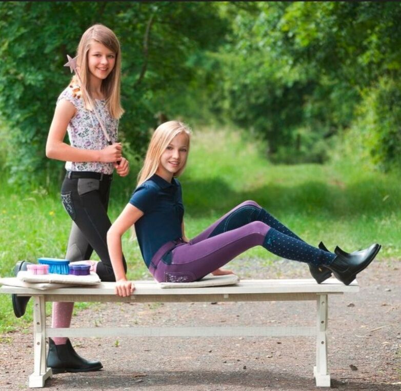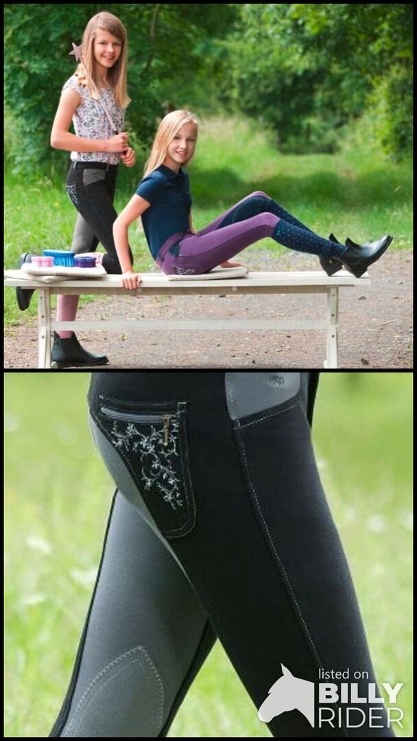 Bryczesy dziecięce - Dziecięce bryczesy MIA. Absolutnie fajne bryczesy do kolan z wyrafinowanymi detalami: Kontrastowe efekty dzięki pełnemu siedzeniu, szlufkom i białym szwom. Elegancki przód z dwiema kanciastymi kieszeniami w kontrastowym kolorze. Dwie efektownie haftowane naszywane kieszenie na suwak z tyłu nadają tym bryczesom wyjątkowy wygląd!