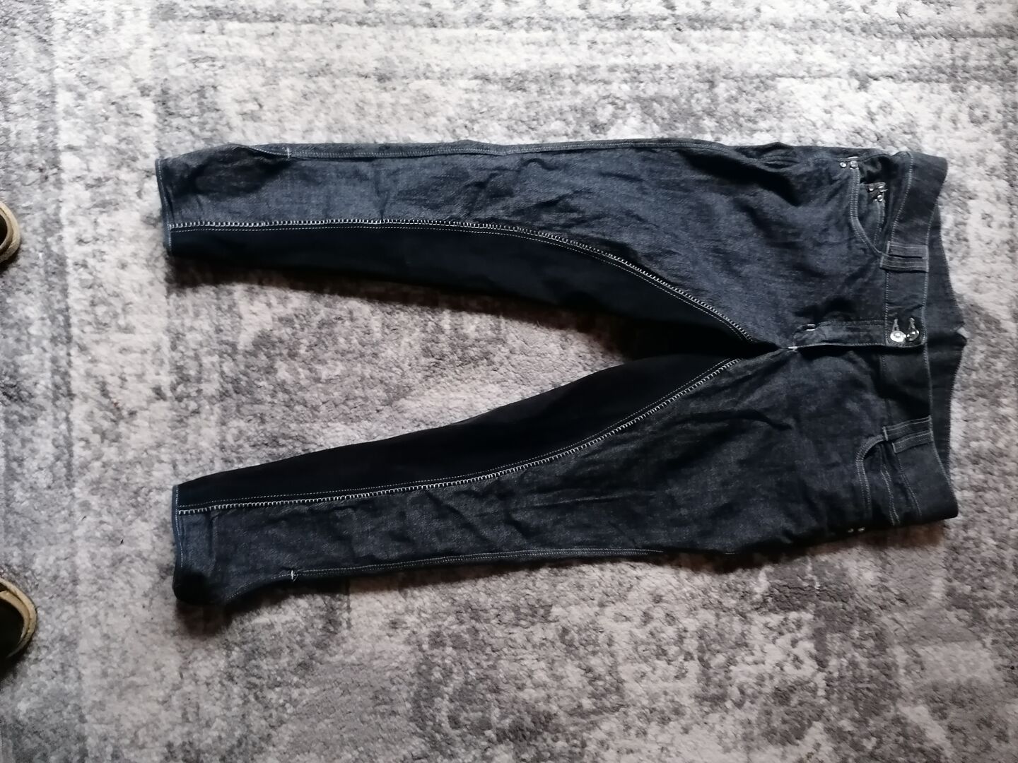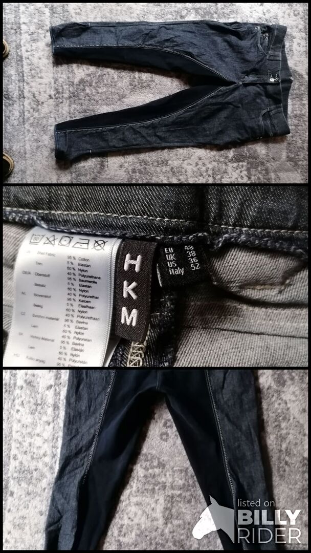 Bryczesy dżinsowe - Mało noszone bryczesy dżinsowe z pełnym siedzeniem firmy HKM. Rozmiar 48, pasuje jak 46. Możliwa wysyłka DHL na terenie całych Niemiec.