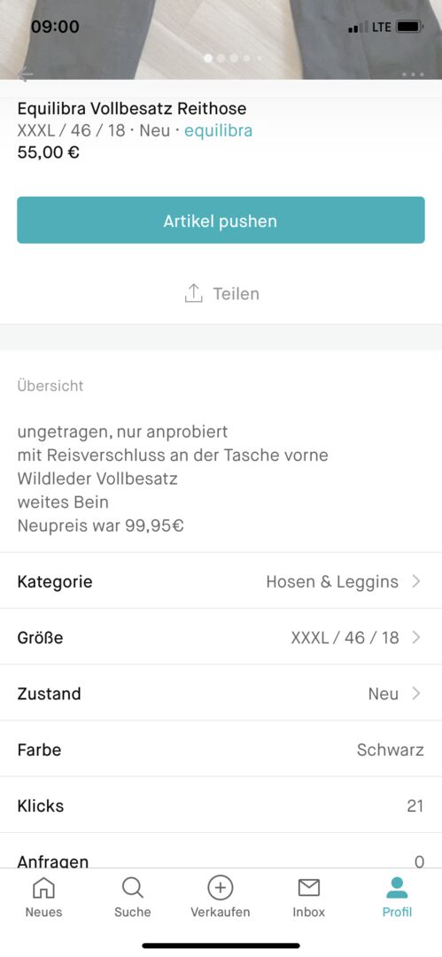 Bryczesy Equilibra z pełnym siedziskiem - Świetne spodnie, nowe... tylko przymierzone Szeroka nogawka Pełne siedzisko z zamszu rozmiar: 46 Pierwotna cena wynosiła 99,95 EUR