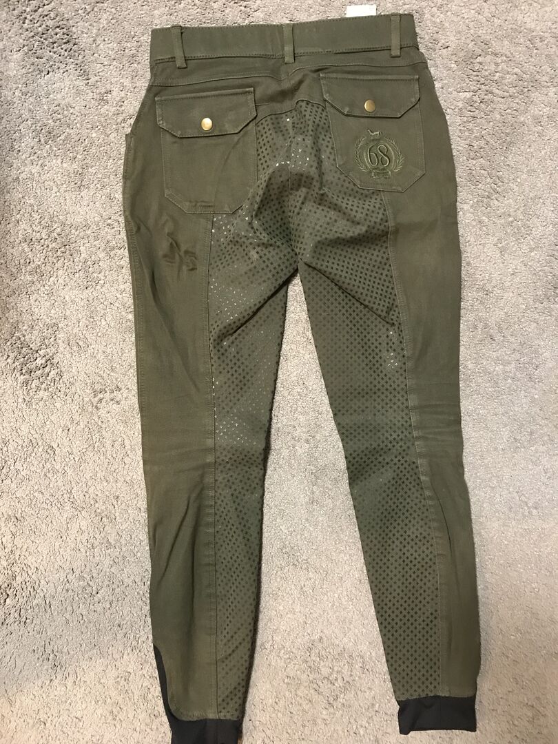 Bryczesy HKM zielone - Używane bryczesy firmy HKM, bez rozdarć i przetarć, niestety po ciąży już nie pasują. Spodnie można odebrać w Berlinie Reinickendorf lub Schöneberg, możliwa jest wysyłka za zwrotem kosztów przesyłki. Płatność tylko za pośrednictwem Paypal friends lub za pobraniem.