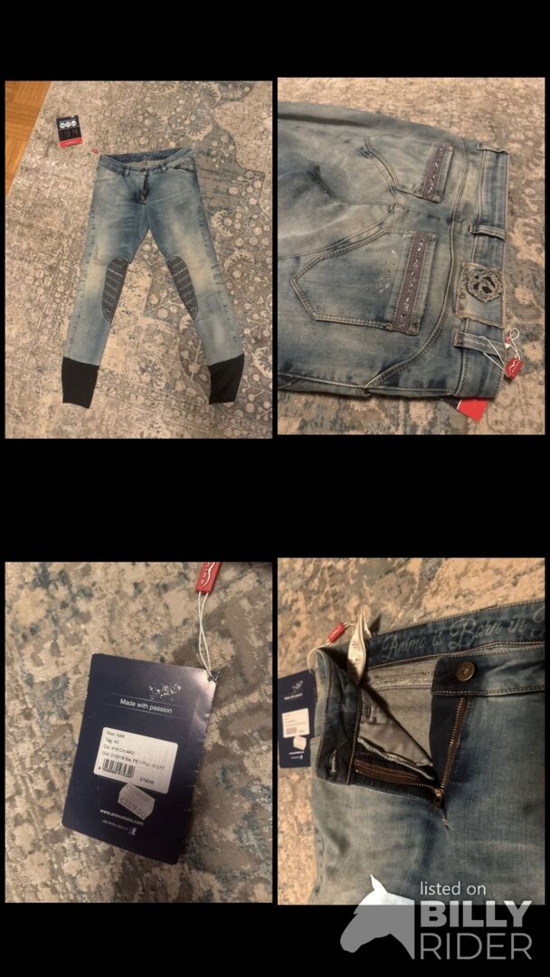 Bryczesy jeździeckie Animo (włoskie 40) - Kupiłam te spodnie za 160 euro na wyprzedaży. Niestety w ogóle nie pasują (noszę rozmiar 38). Więc raczej coś dla 36, niski krój (spodnie hipster). Bardzo wygodne w noszeniu, a materiał jest świetny.