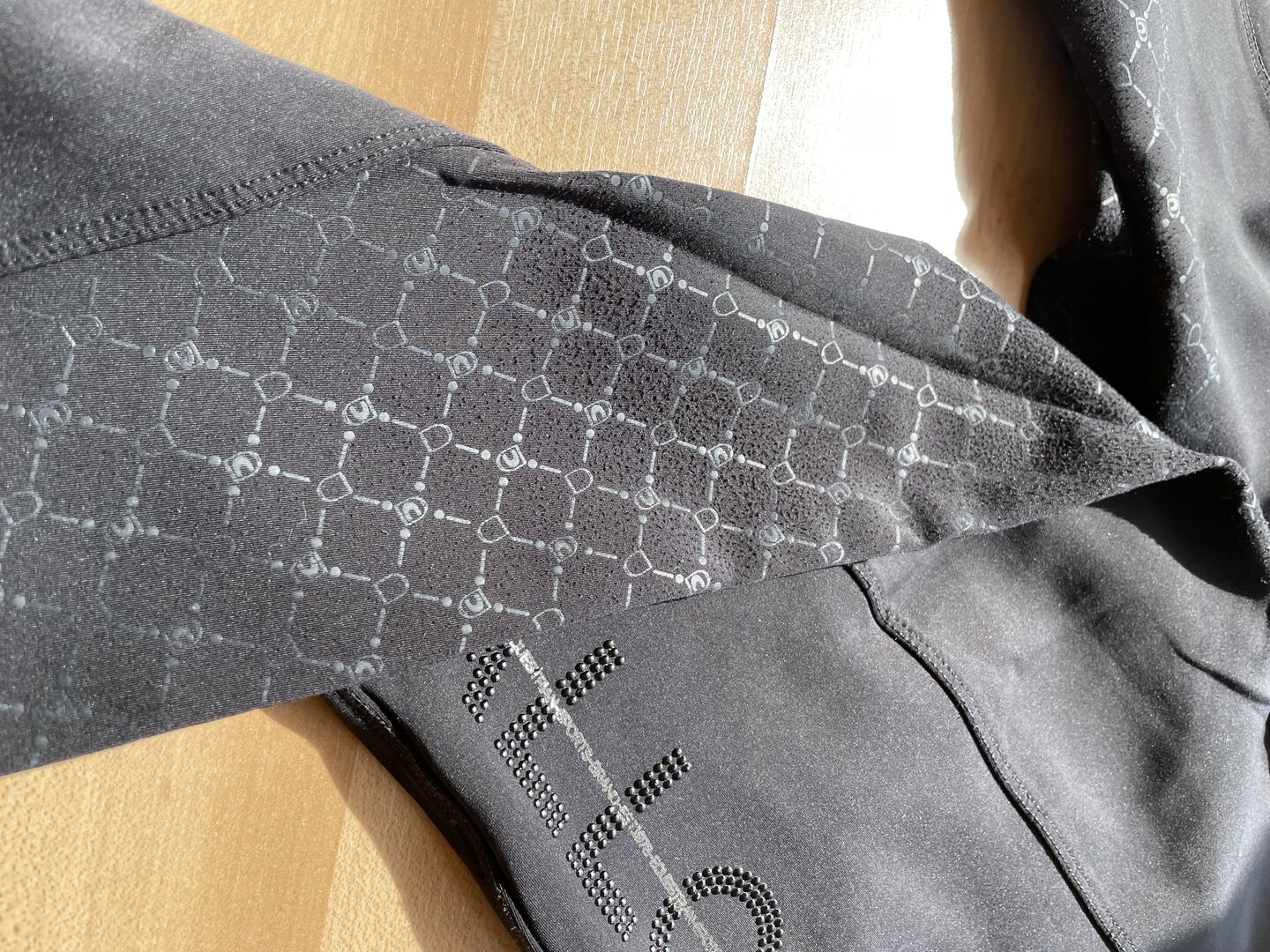 Bryczesy są w dobrym stanie (uchwyt jest idealny, zamki błyskawiczne są w porządku). Tylko napis trochę odpadł podczas prania (patrz zdjęcie) i jest trochę mechacenia po wewnętrznej stronie uda (patrz zdjęcie)