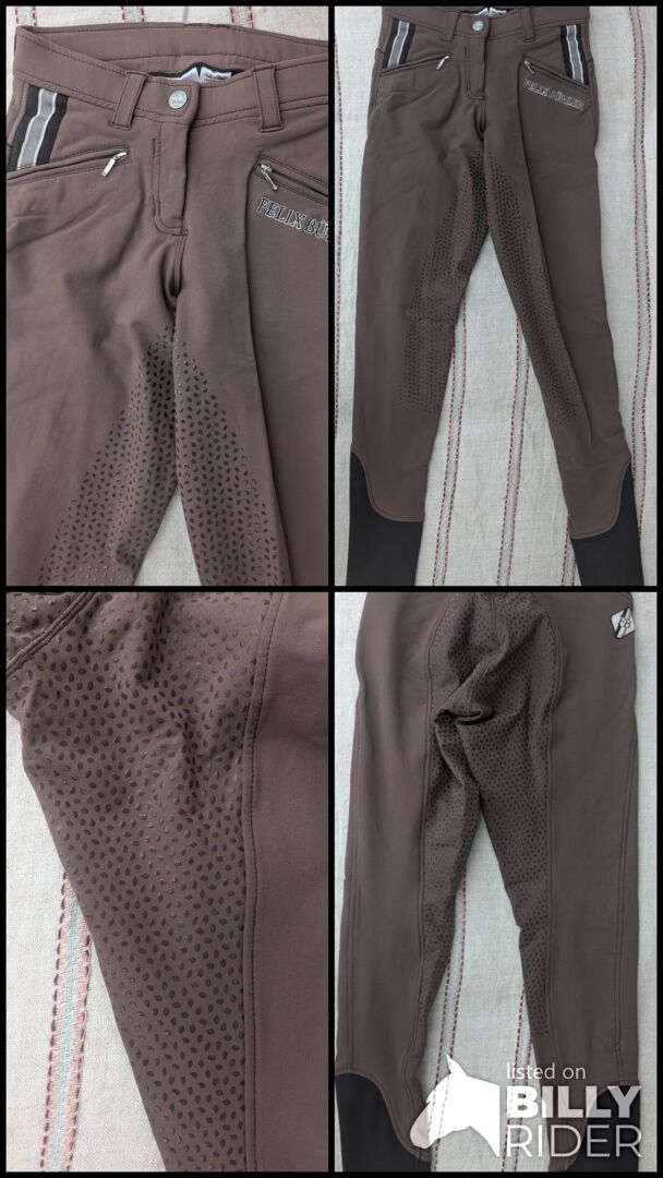 Bryczesy jeździeckie Felix Bühler brązowe silikonowe siedzisko rozmiar 34 - BRYCZESY FELIX BÜHLER GR. 34 w bardzo dobrym stanie z elastycznym wykończeniem nogawek