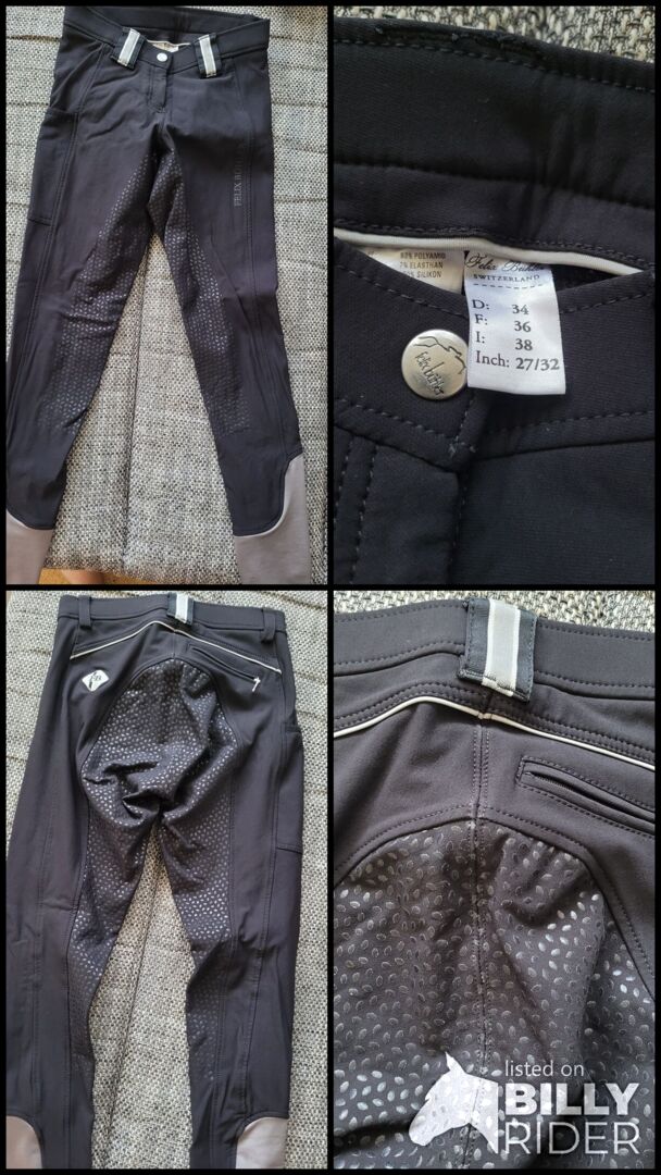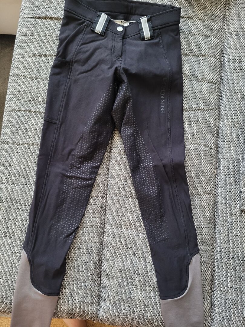 Bryczesy jeździeckie Felix Bühler z silikonem na całej powierzchni i kieszenią na telefon komórkowy, XS - Sprzedam bryczesy jeździeckie Felix Bühler, rozmiar 34 w kolorze czarnym.