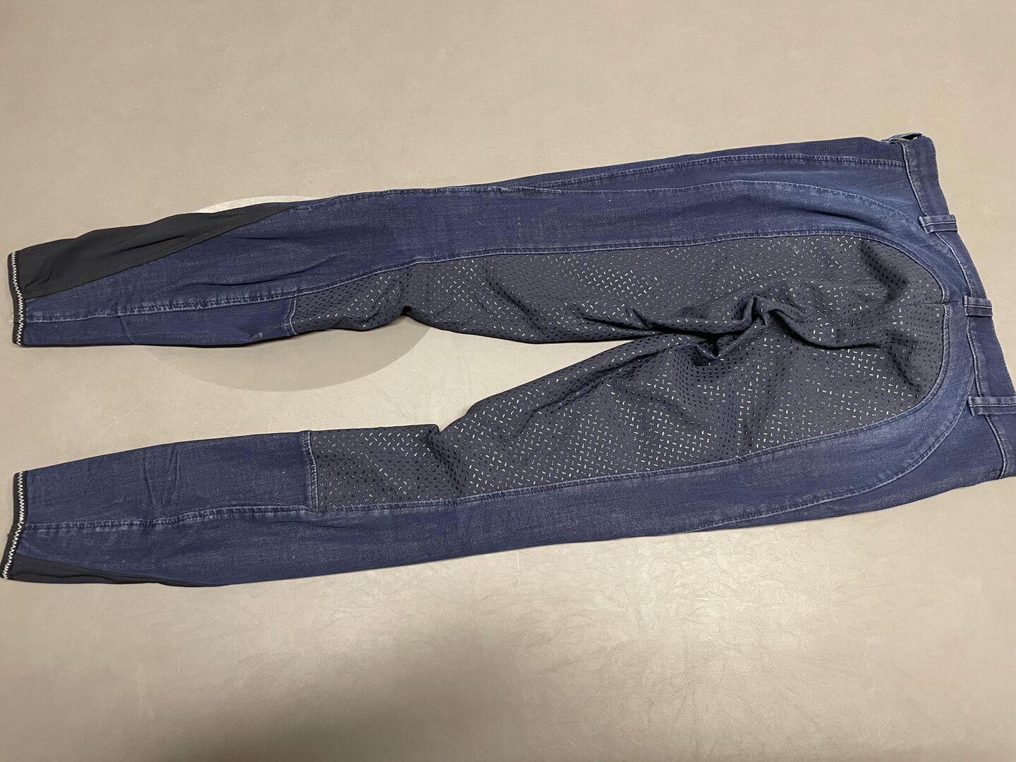 Bryczesy jeździeckie Pikeur Janelle Grip Jeans Gr. 72 - Bardzo rzadko noszone, bez żadnych uszkodzeń, szwy i uchwyt jak nowe, świeżo wyprane, dżinsy wyglądają, ale nadal bardzo wygodne w noszeniu, nie widać z powodu zaszewek.