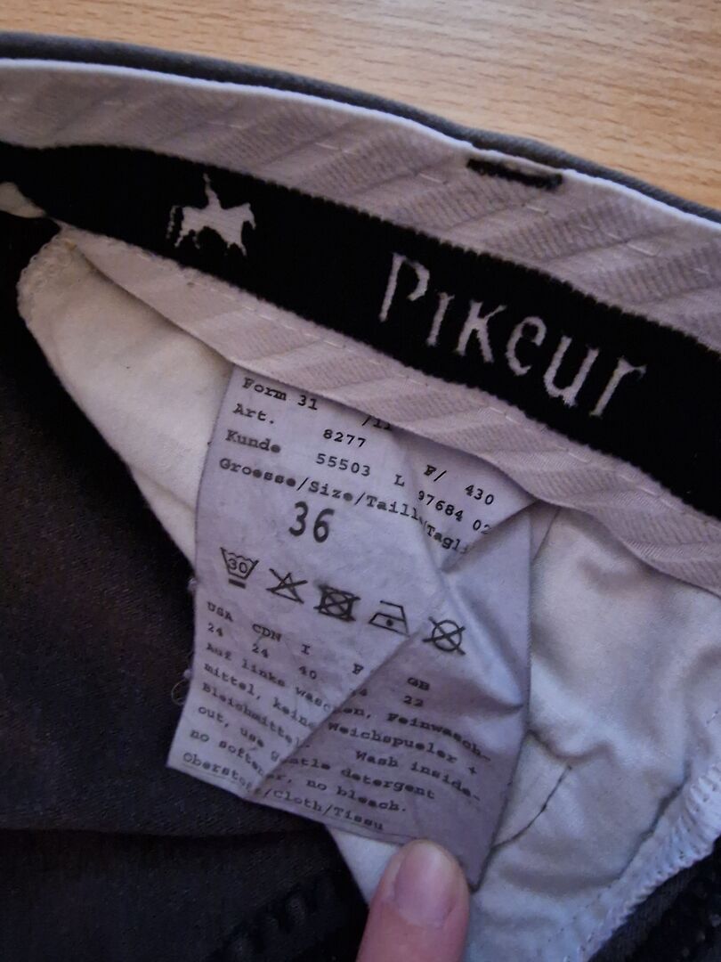 Bryczesy jeździeckie Pikeur z pełnym siedziskiem rozmiar 36 - Sprzedaję tutaj moje letnie bryczesy firmy Pikeur w rozmiarze 36. kolor szary / lamówka szara.