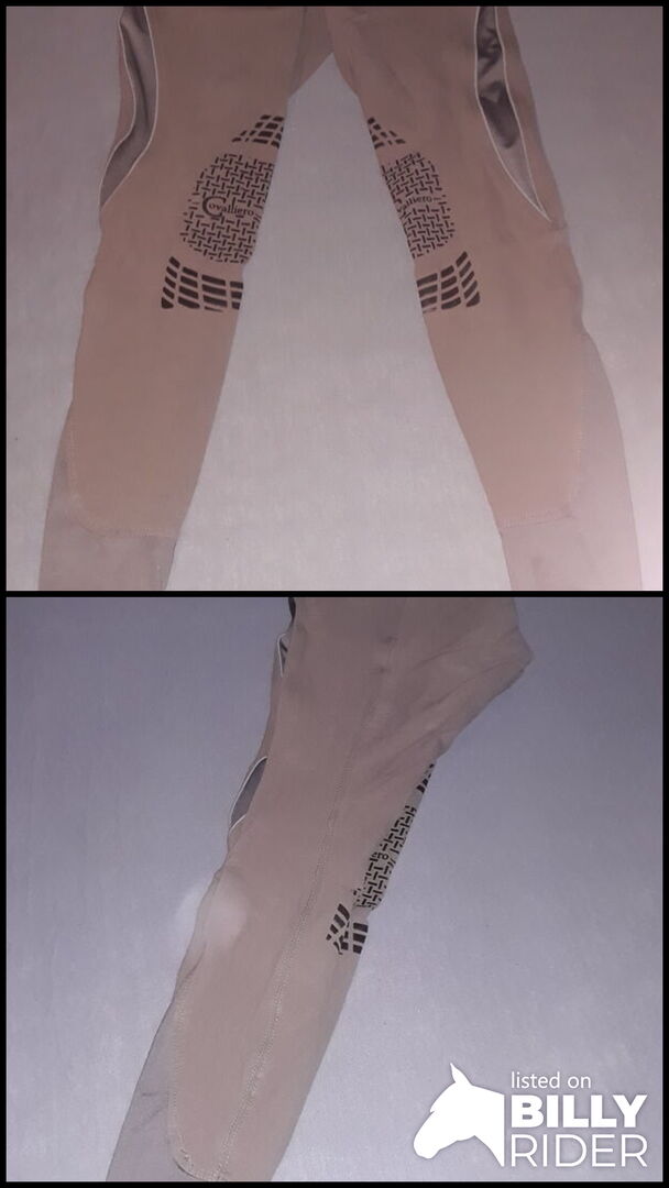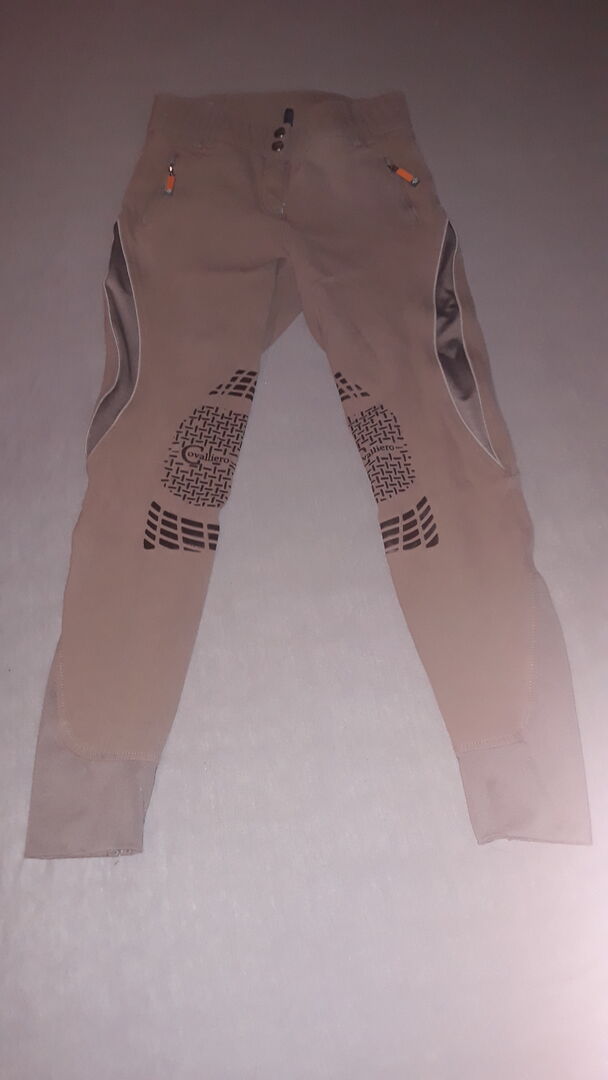 Bryczesy jeździeckie rozmiar 36 - Używane bryczesy jeździeckie w rozmiarze 36 (raczej małe) z łatami na kolanach.